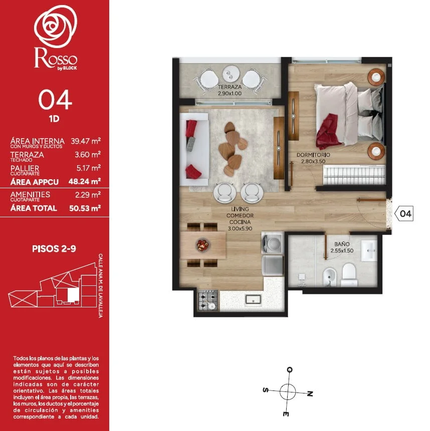 Venta de apartamento de 1 dormitorio en Rosso by Block, estratégicamente ubicado en la calle Ana M. de Lavalleja y Juan Paullier, se encuentra a pocos metros de la Avenida 18 de Julio y el Bulevar Artigas. Su proximidad a la terminal Tres Cruces lo convierte en un punto ideal tanto para inversores como para quienes buscan un nuevo hogar con excelente conectividad.
