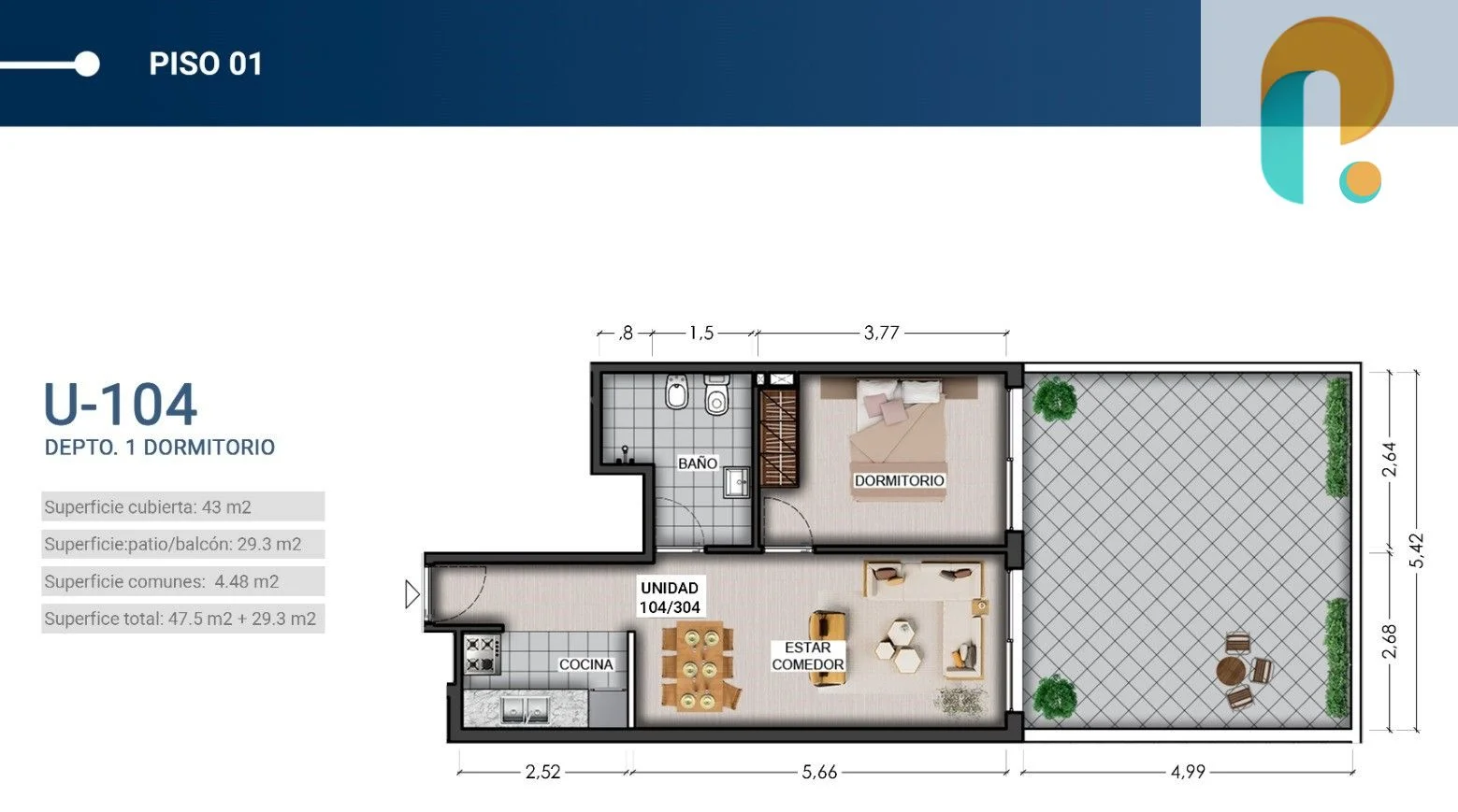 Cordón, Charrua & Jackson Monoambiente Con Patio