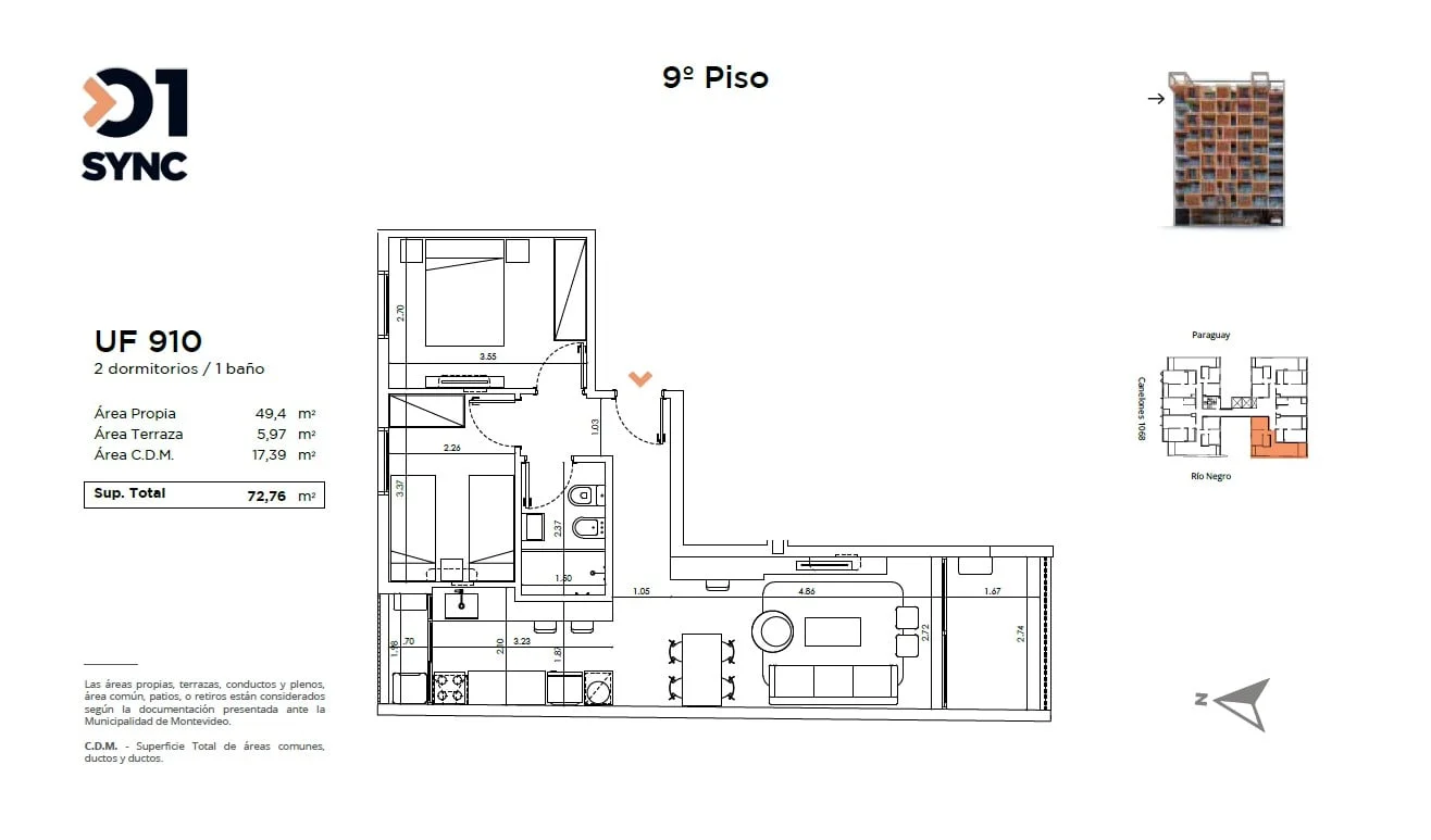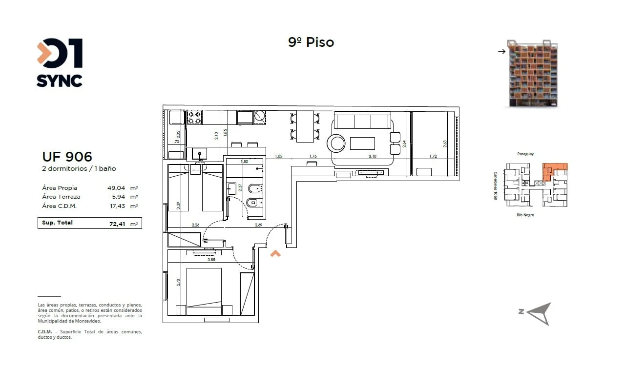 ¡Excelente oportunidad de inversión! Apartamento de 2 dormitorios en venta en 01 SYNC, ubicado en excelente punto, en el límite de Barrio Sur y Centro - Canelones y Río Negro. A pasos de la Rambla, Cordón y Ciudad Vieja.
