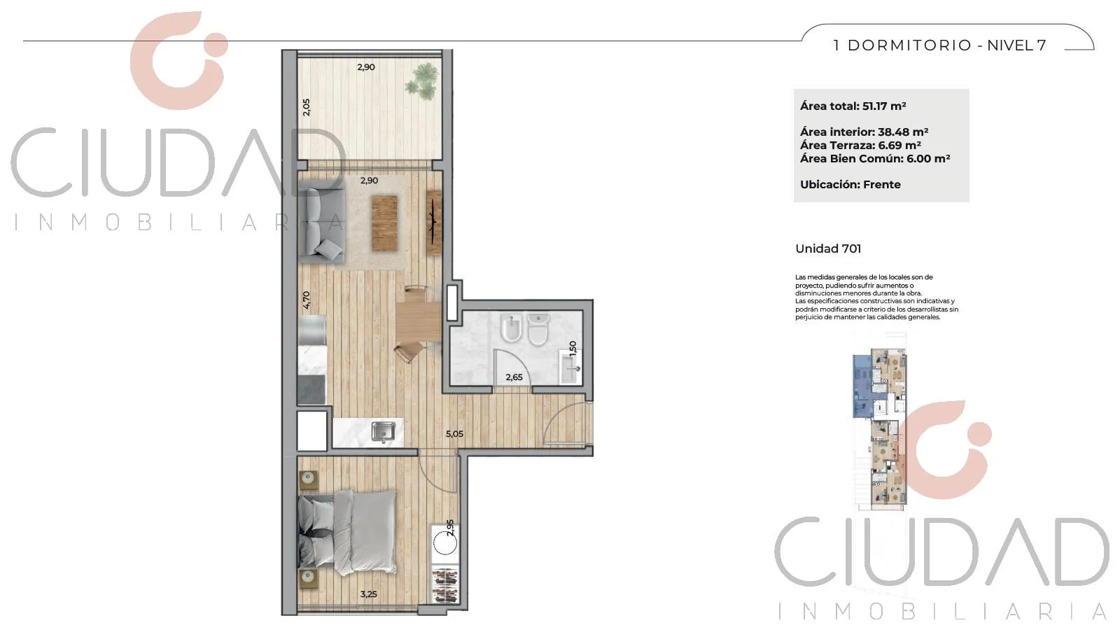 Unidad al Frente en Piso 7 con: