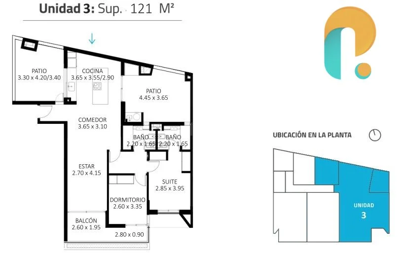 Además, disfrutarás de 2 patios propios uno de ellos con parrillero privado, así como también 2 baños 1 en suite.