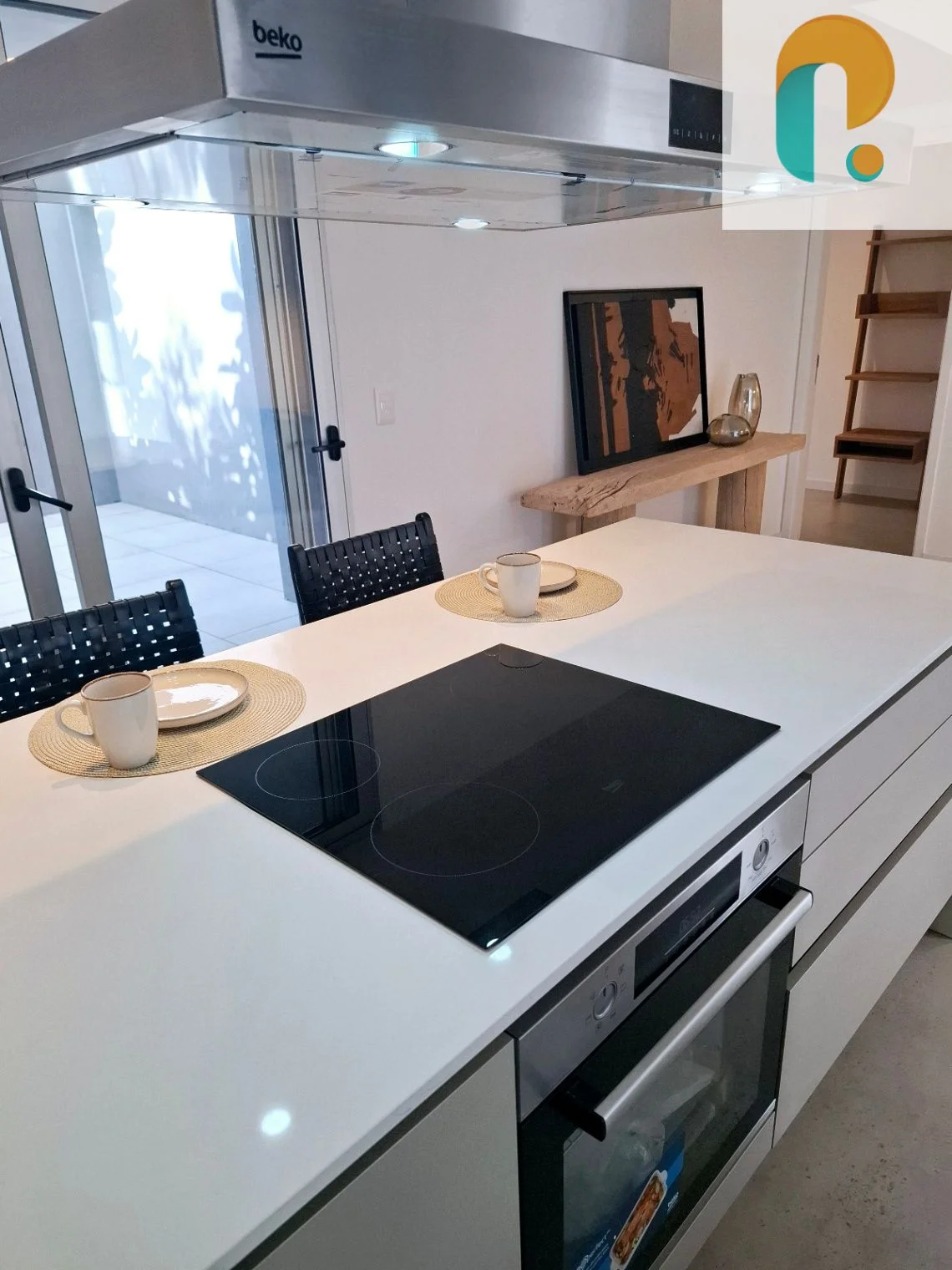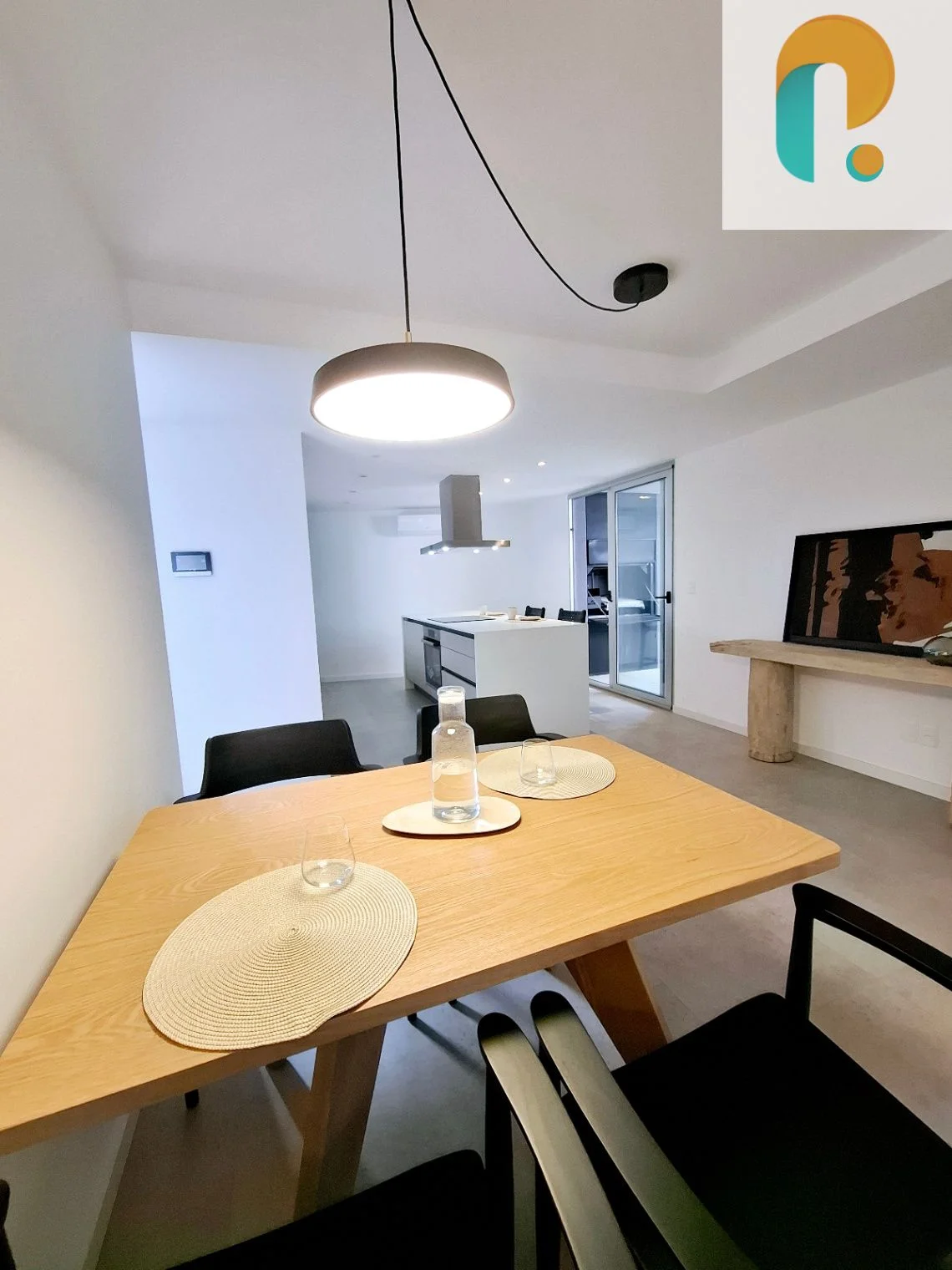El Apartamento cuenta con 2 dormitorios cocina de concepto abierto, equipada con isla, horno y anafe, y un luminoso living comedor que se conecta a un balcón principal.