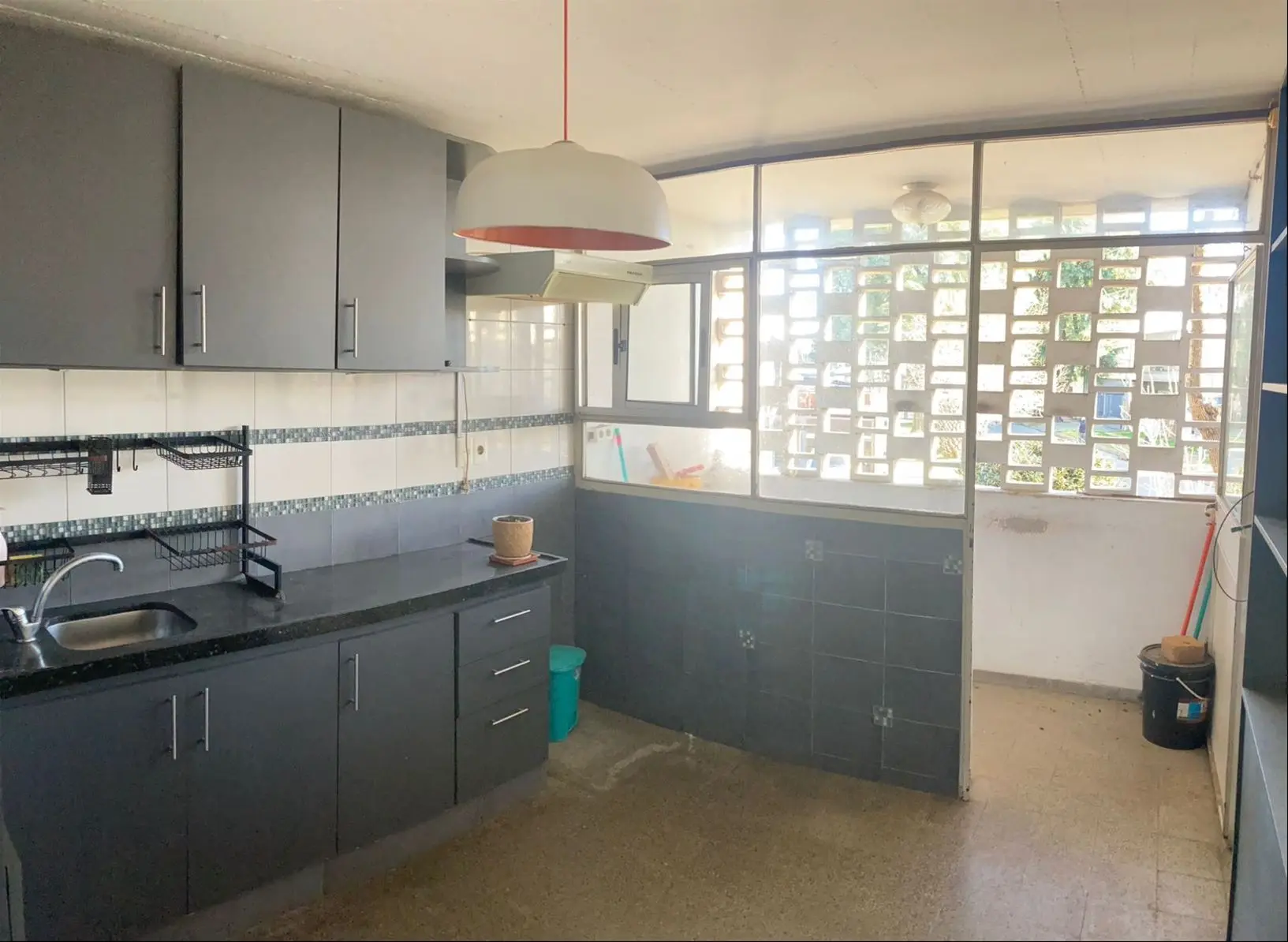 Amplia cocina semi integrada, con lacares sobre y bajo mesada y terraza lavadero.