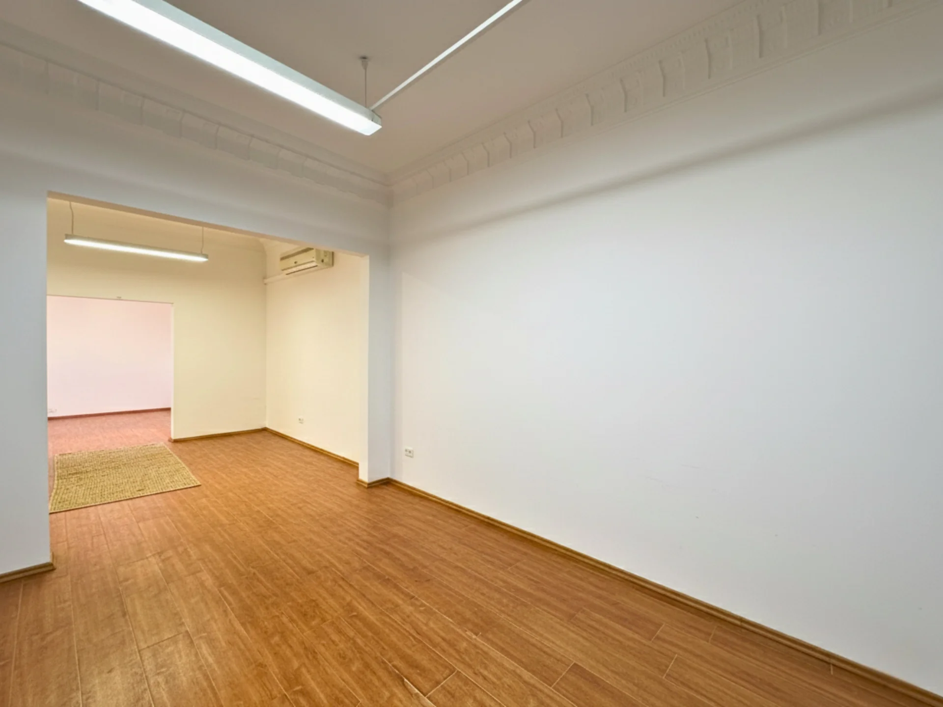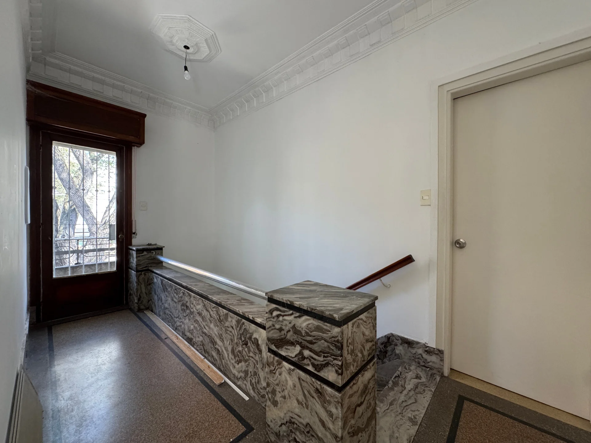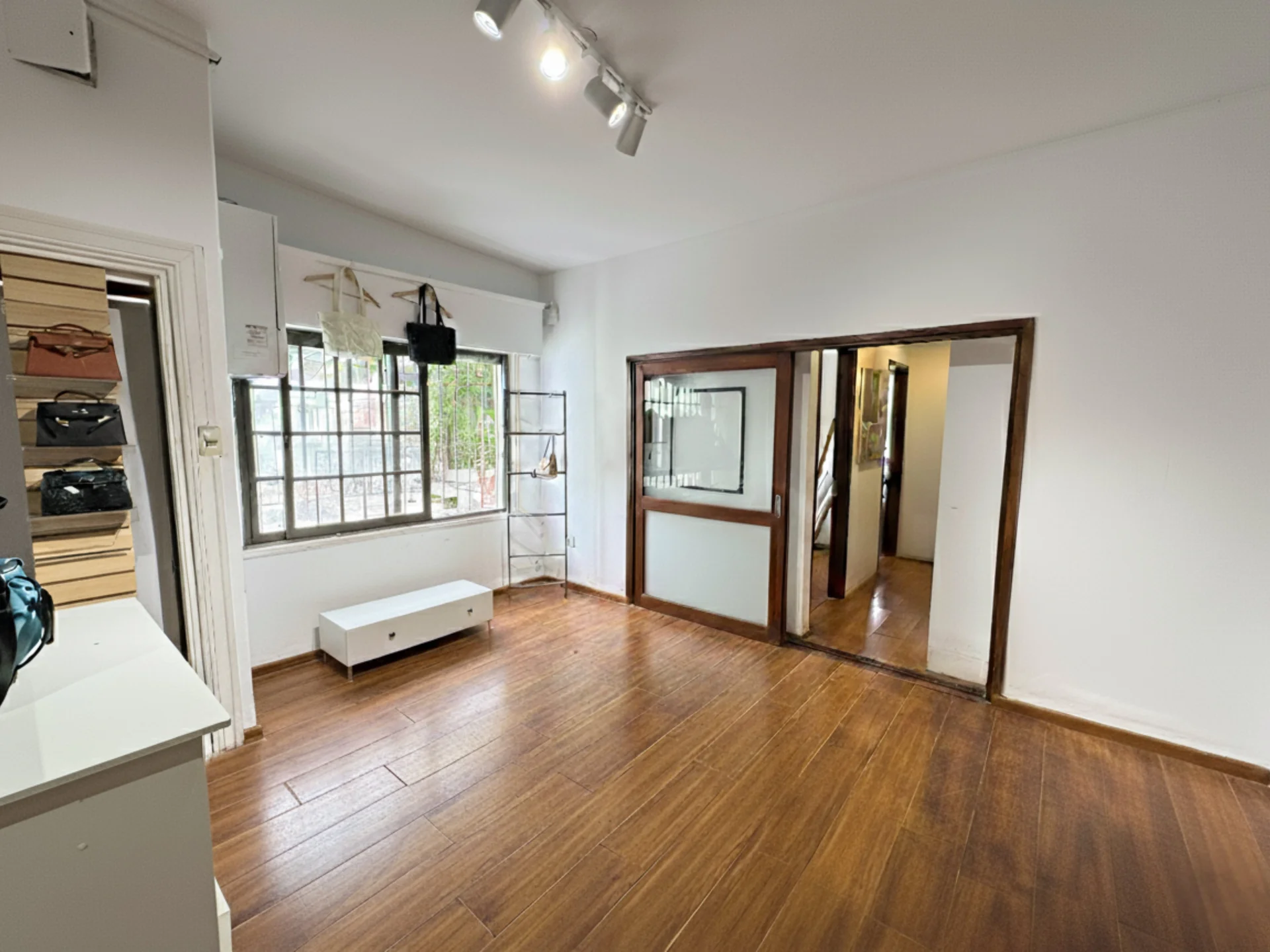 Amplio hall de distribución, living comedor de buenas dimensiones, cocina definida con acceso al sótano, tres habitaciones de construcción liviana que continuan hacia el fondo con un toilette, y dos escaleras que permiten una doble circulación. Servicio completo.