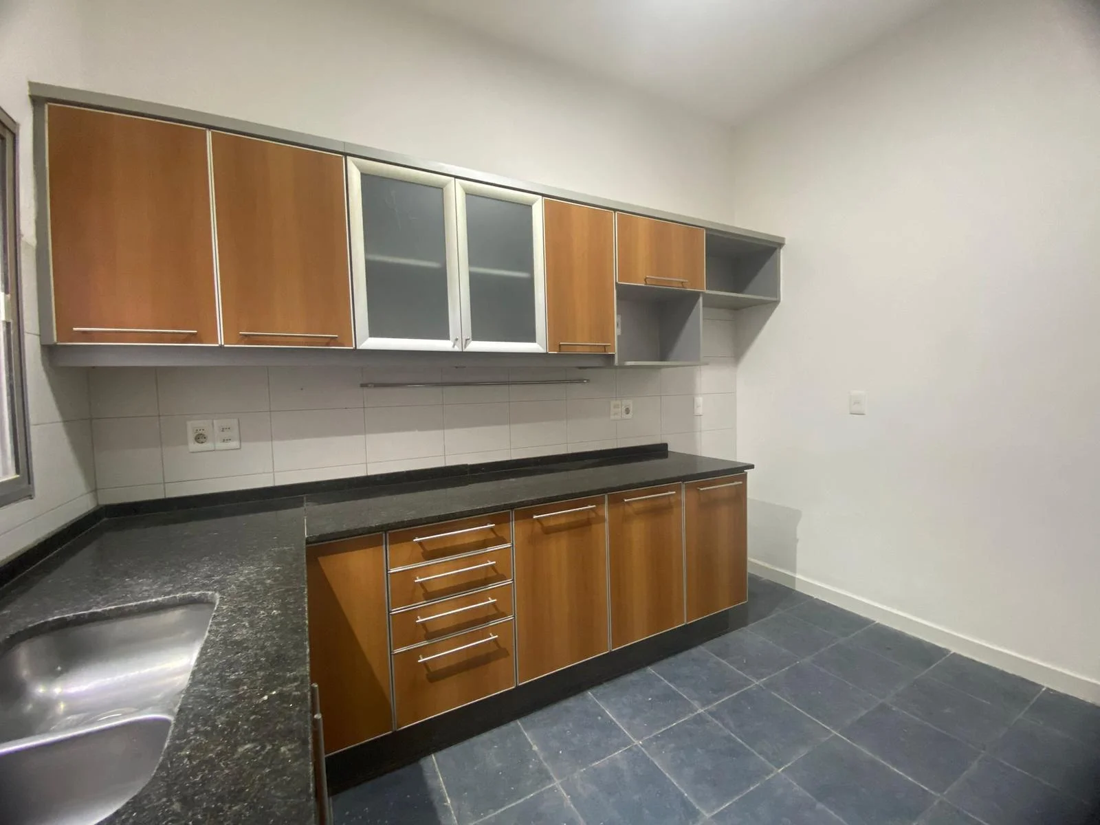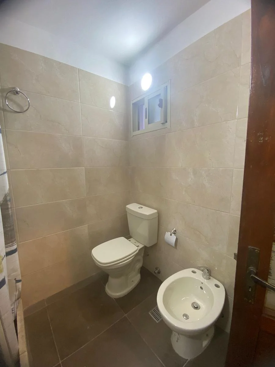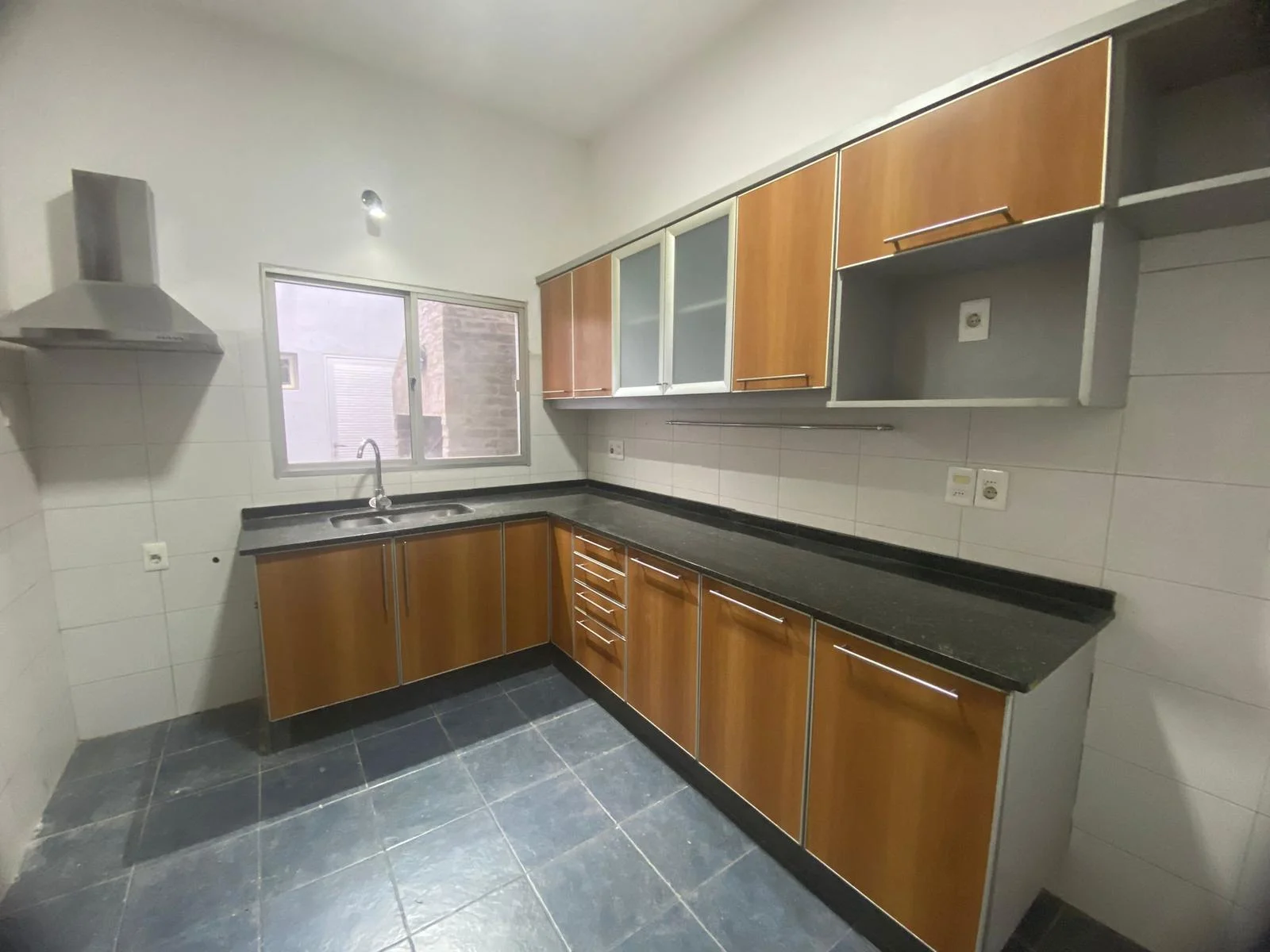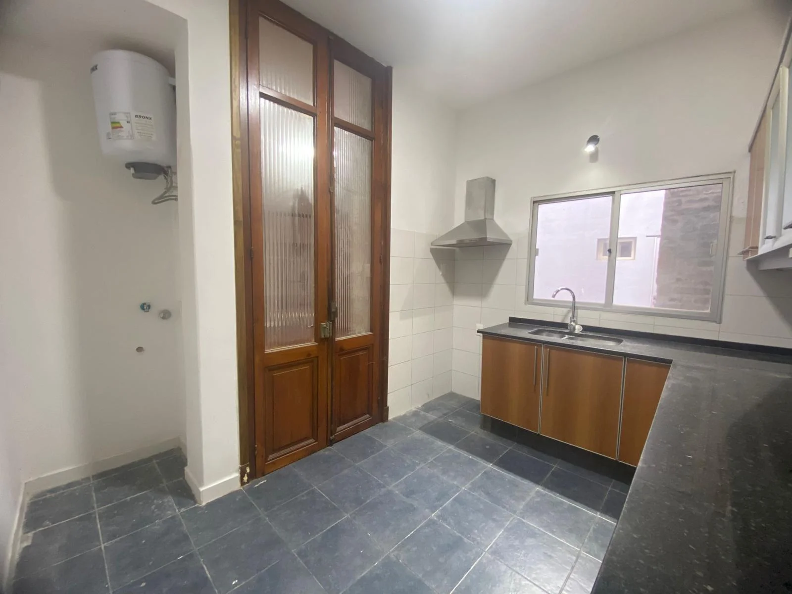 Cocina definida, amplia, con profusión de placares, campana extractora y conexión para lavarropas.
