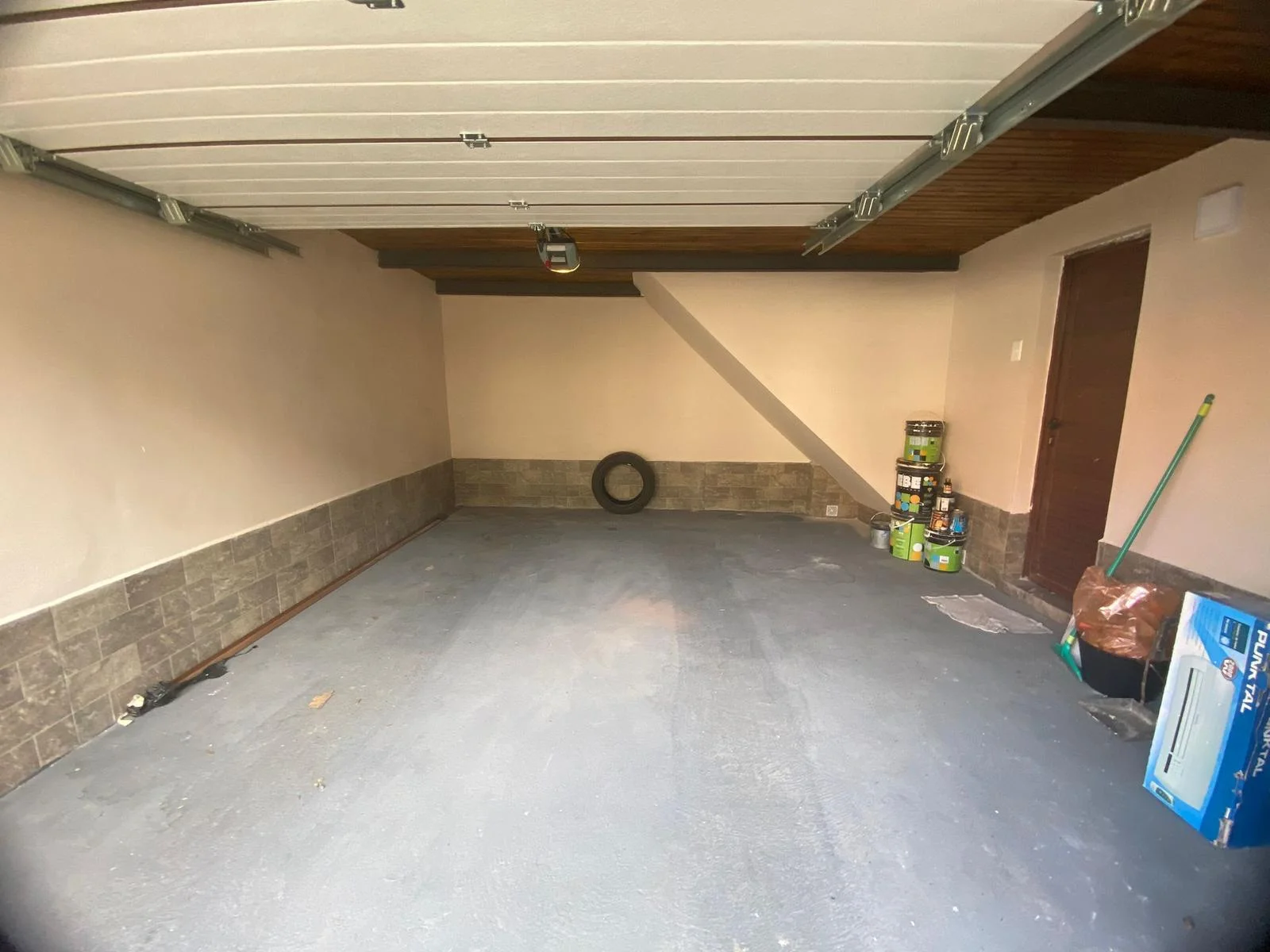 Cómodo garaje con puerta basculante y acceso a la casa. 4.75 x 4.75 mts , alto 1.85 mts.