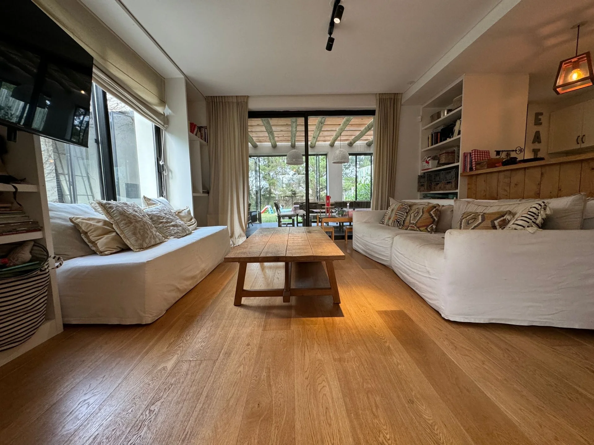 Ph de diseño en venta en barrio con seguridad San Nicolas. Planta baja: living comedor con estufa a leña conectada por ductos al resto de la casa, estar con cocina integrada conectado al fondo con gran pérgola techada de 36 m2 con estufa. Lavadero. Planta alta: 3 dormitorios, principal en suite con vestidor. Pisos de roble. Aberturas dobles. Cerramiento en pérgola exterior muy disfrutable. Losa radiante eléctrica. Seguridad 24 horas. Cochera para varios autos. Consulte por mas información! Mercedes Arocena Bienes Raíces