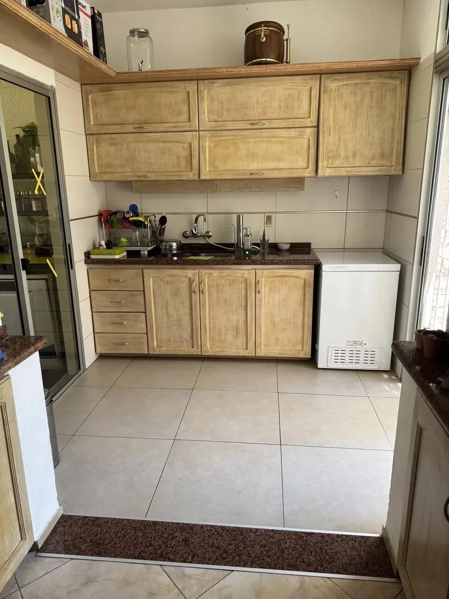 Cocina muy cómoda y luminosa con mas de 6 metros de mesada lineal de granito de alta calidad, muebles bajo mesada y aéreos completos.