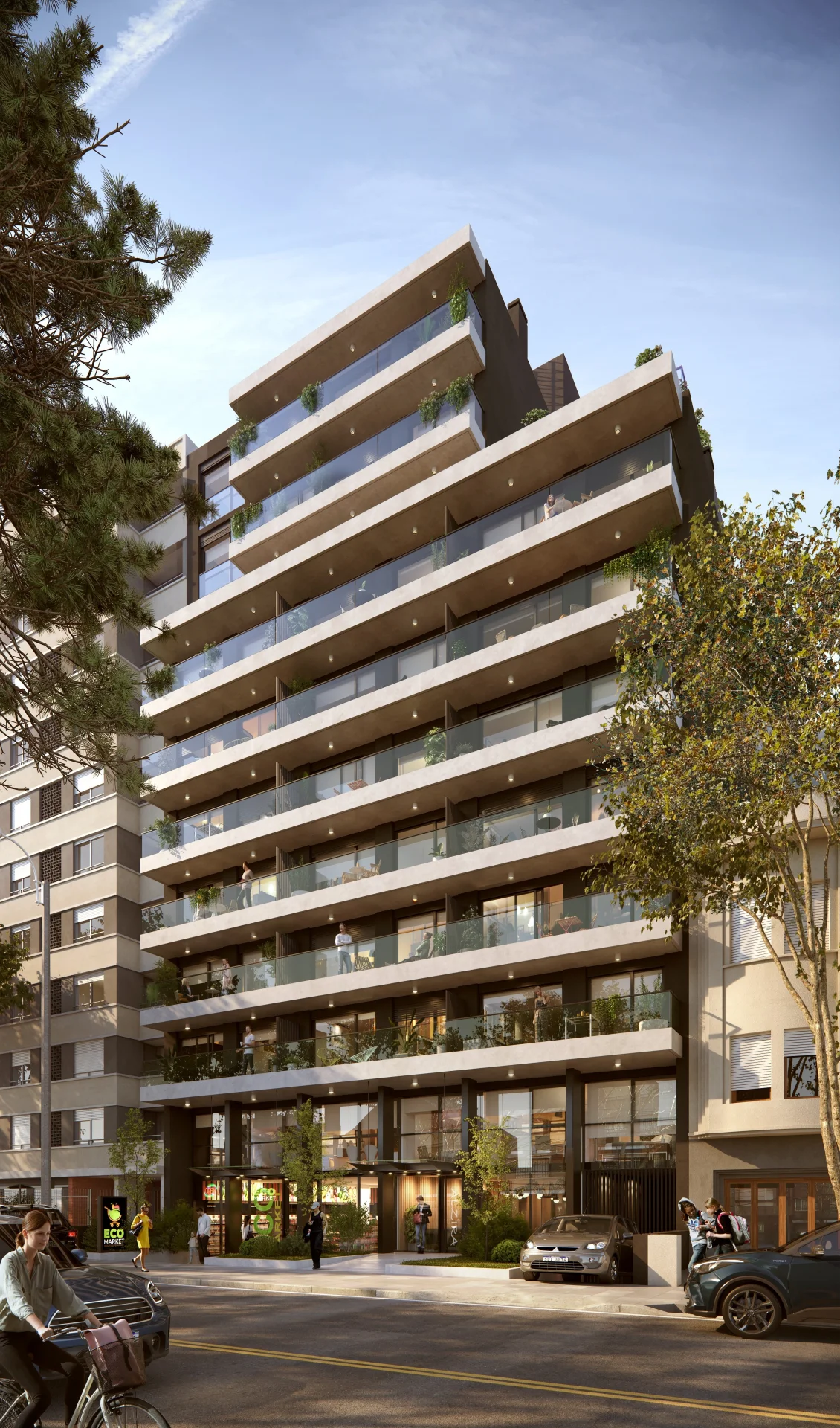 Rodeado por clubes deportivos, universidades, plazas y parques, hospitales y comercios. Un edificio de imagen moderna y dinámica. Proyectado en 3 bloques, conformado por 88 apartamentos con terrazas, patios y áreas comunes para vivir y trabajar.