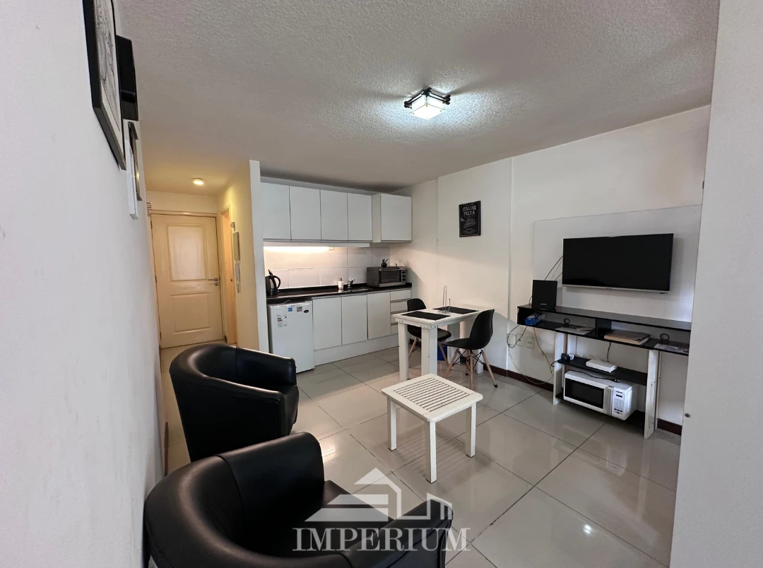 El espacio cuenta con un diseño funcional, cocina integrada con muebles aéreos y bajo mesada, baño completo y ventanales que aportan amplitud y luminosidad.