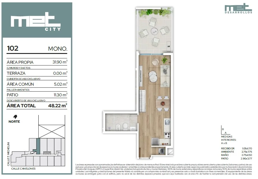 Venta de Monoambiente en Met City, Centro, ubicado en Canelones, entre Héctor Gutiérrez Ruiz y Zelmar Michelini, en una zona hiperconectada, donde te facilita la logística cotidiana, con todos los servicios a mano y a su vez muy cerca del escape de la Rambla.