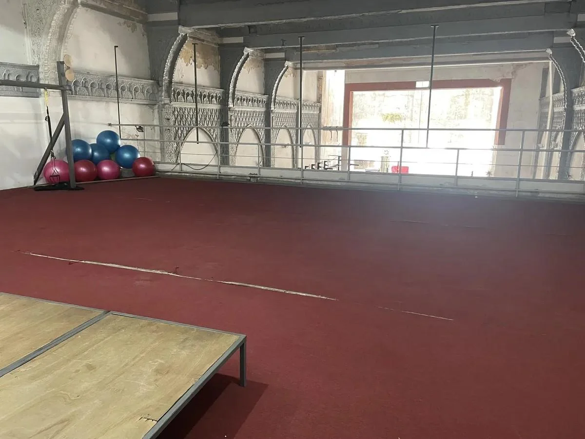 Planta alta aparte de la balconada hay una oficina central de 2x2 aprox con Aire Condicionado y un salón que se utiliza para clases de 160 m2