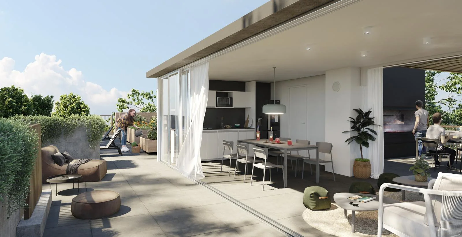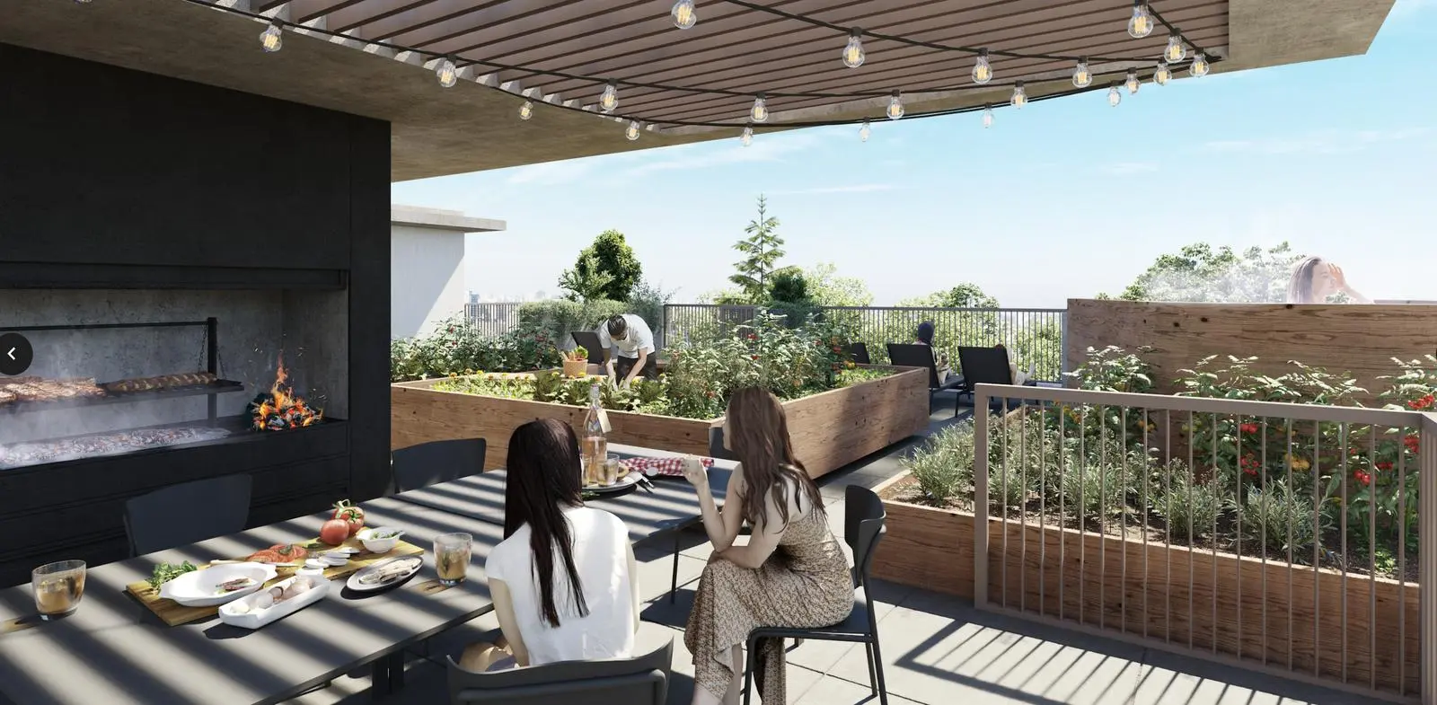 Con el fin de coronar el bloque alto, un conjunto de amenities se despliegan en el último nivel.