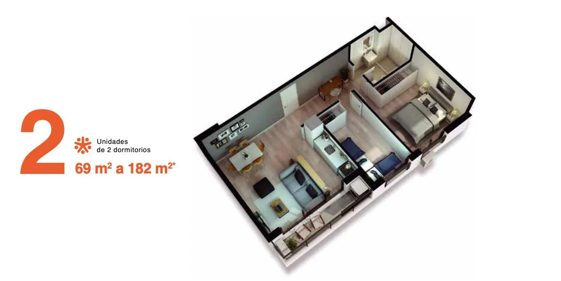 2 Dormitorios.