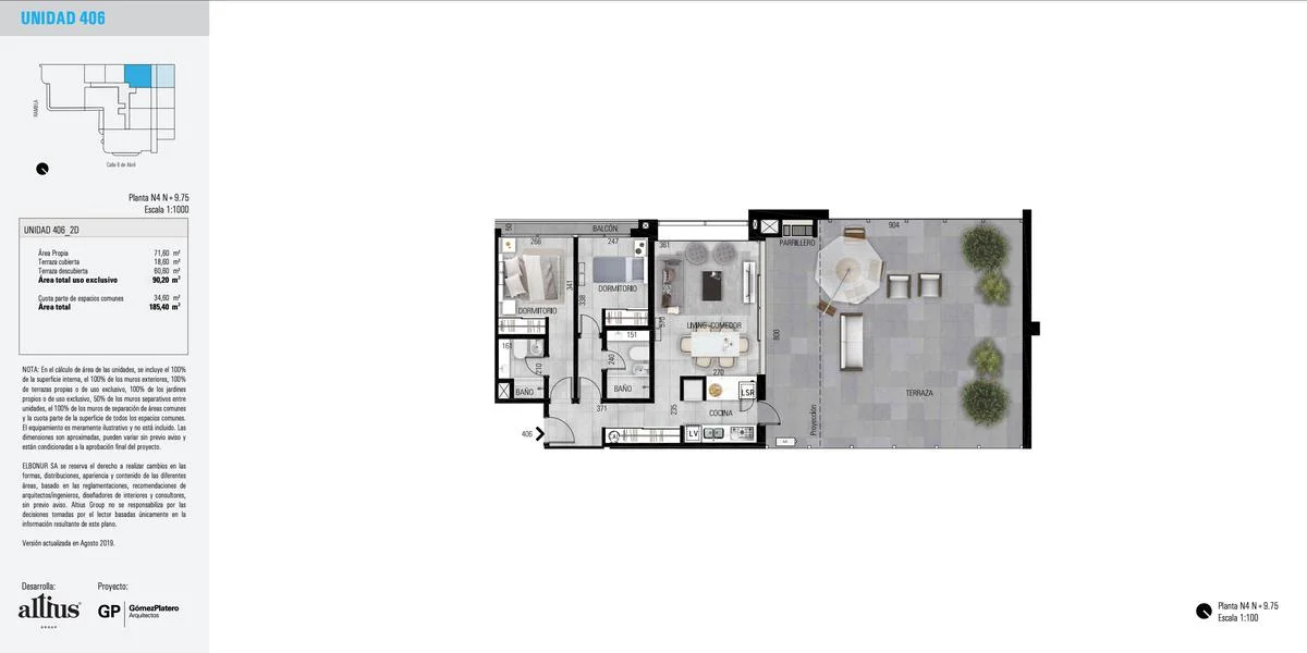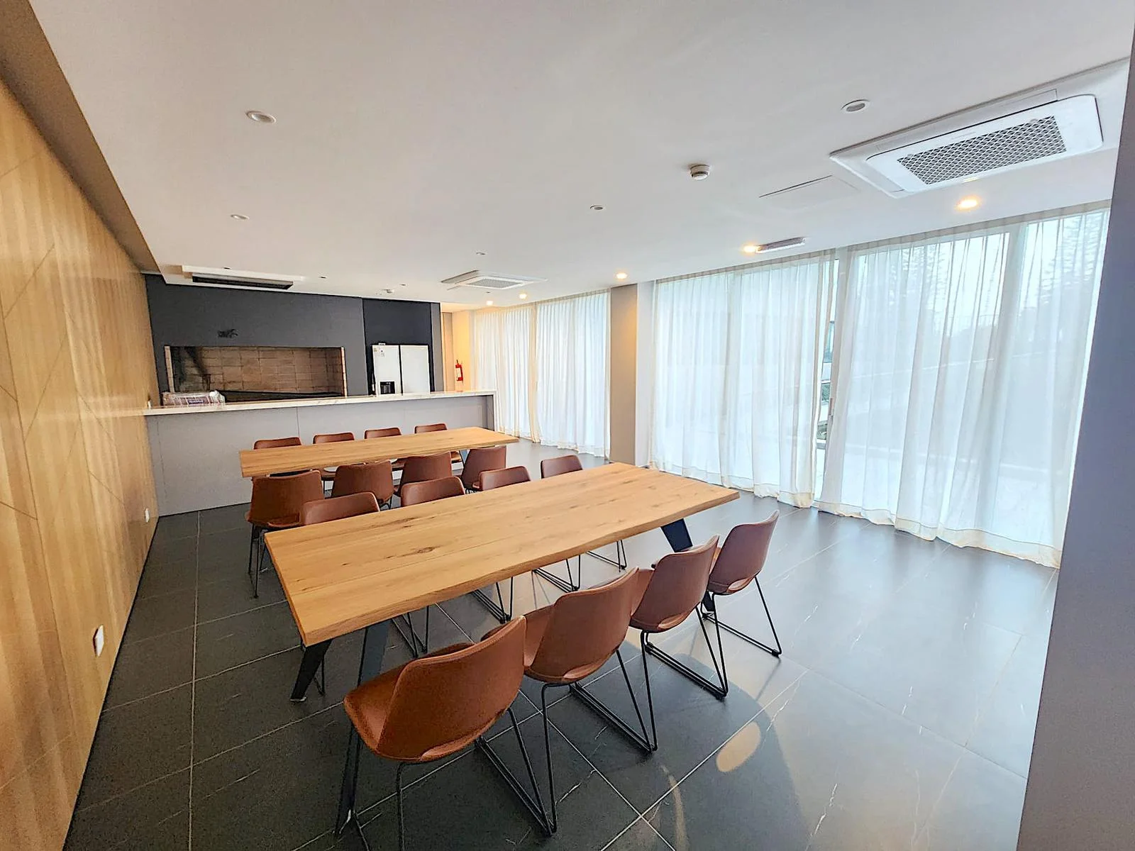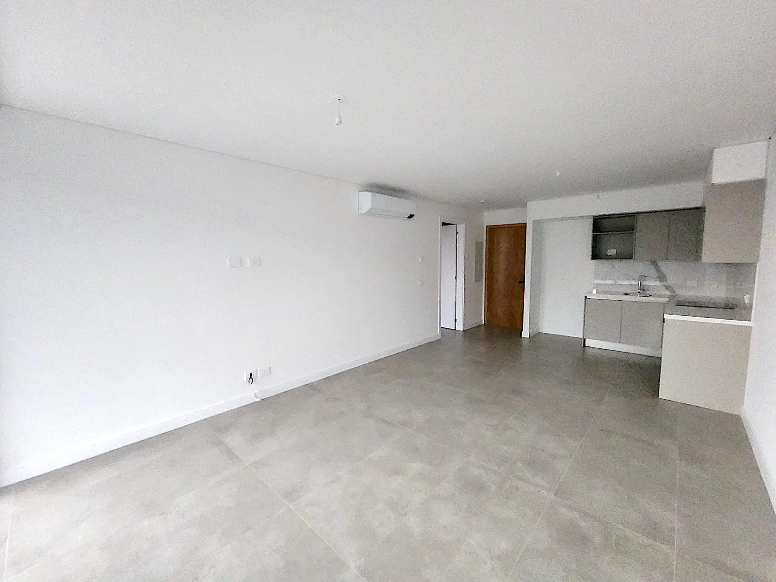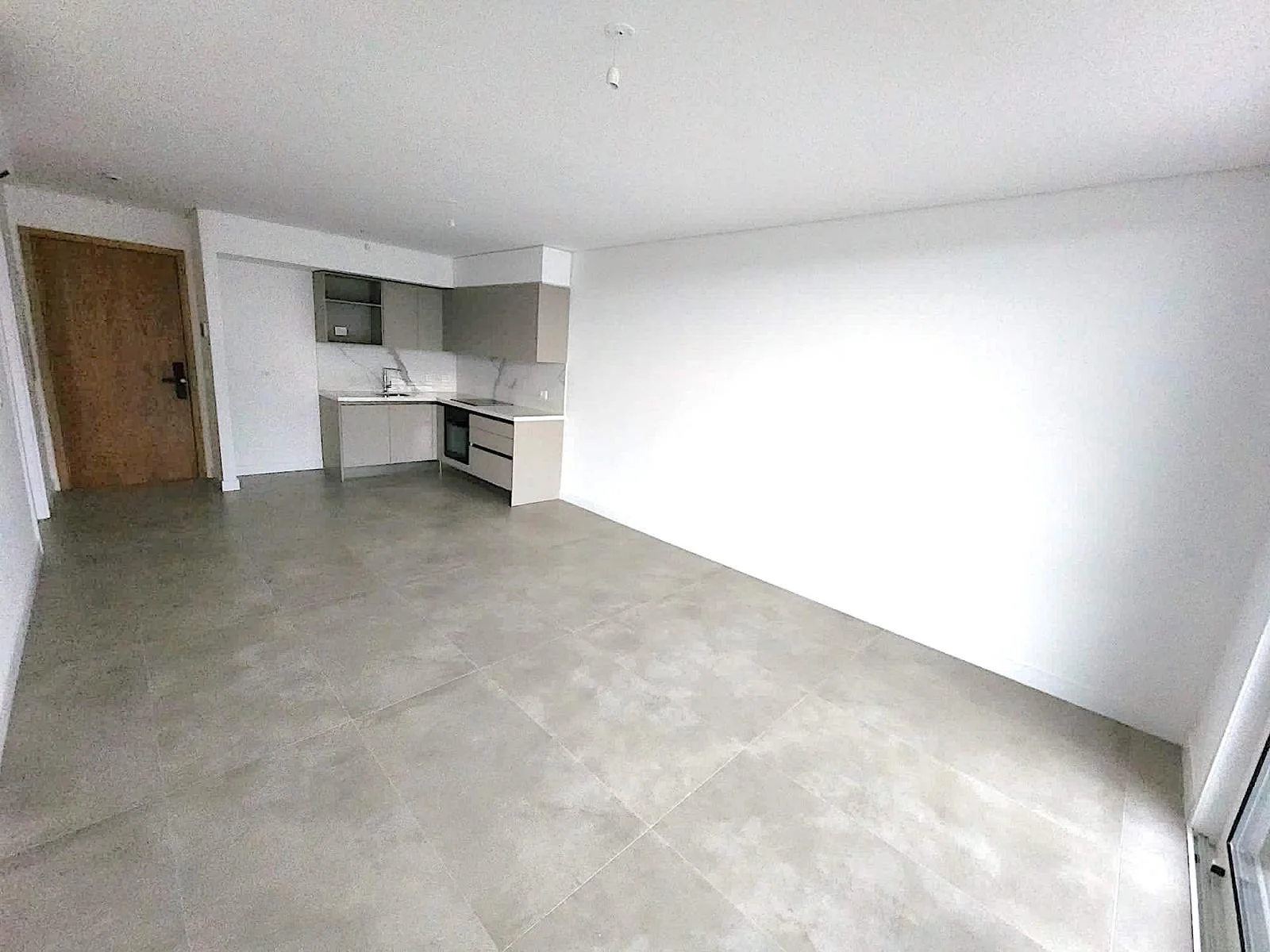 Living comedor con cocina integrada salida a terraza con parrillero.