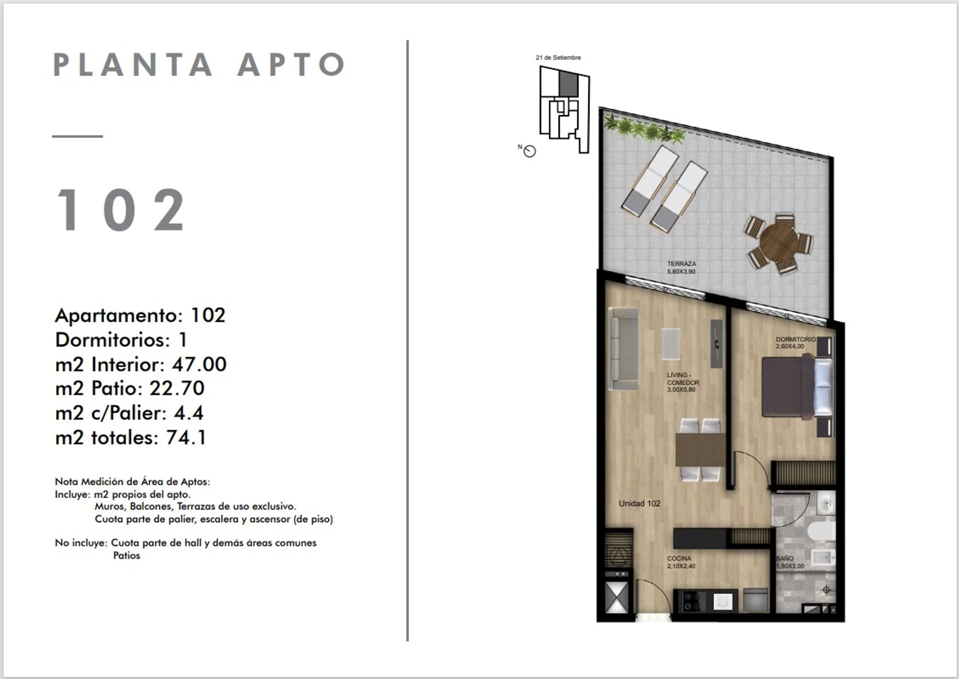 Corredor Responsable: - Contacto: Silvana De La Fuente Se vende apartamento A ESTRENAR sobre excelente zona de Punta Carretas. Se trata de una 2da torre de un proyecto que ya tiene su primera torre entregada. La unidad es al frente en 1er piso con amplia terraza. Living comedor con cocina integrada y salida a la terraza. Cocina con muebles aéreos y bajo mesada, campana extractora. Baño amplio. Dormitorio con placard. Excelente calidad de materiales y terminaciones. Aberturas DVH y persianas eléctricas. Previsión aires acondicionados. Edificio con barbacoa, gimnasio y laundry. Gastos de ocupación 4% Se trata de una reventa, puede ser pago contado o por préstamo bancario. Fecha de entrega Setiembre 2025. Excelente opción para invertir. No incluye horno y anafe en el precio de venta. No dudes en consultar. Comisión inmobiliaria 3% más IVA. Cada Oficina es de propiedad, gestión y desarrollo independiente La presente publicación describe las características esenciales del inmueble, debiéndose consultar al responsable de la operación por la eventual actualización de las medidas, descripciones arquitectónicas y funcionales, servicios, impuestos, precios y demás información, cuyos valores son aproximados.