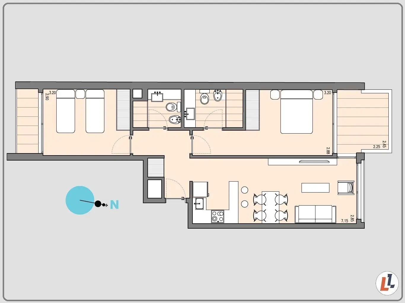 LIVING COMEDOR. 2 TERRAZAS, 2 DORMITORIOS, SUITE, 2 BAÑOS Y COCINA