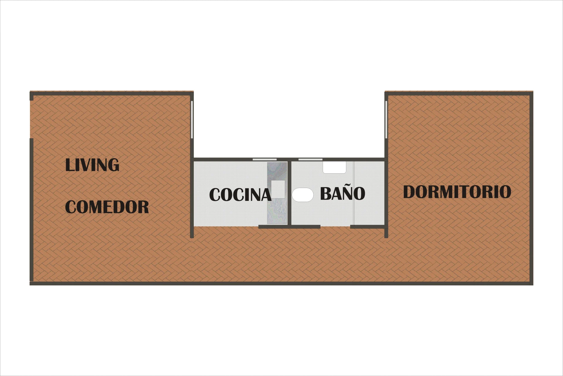 Living-comedor, cocina definida con placares sobre y bajo mesada, amplio dormitorio y baño completo.