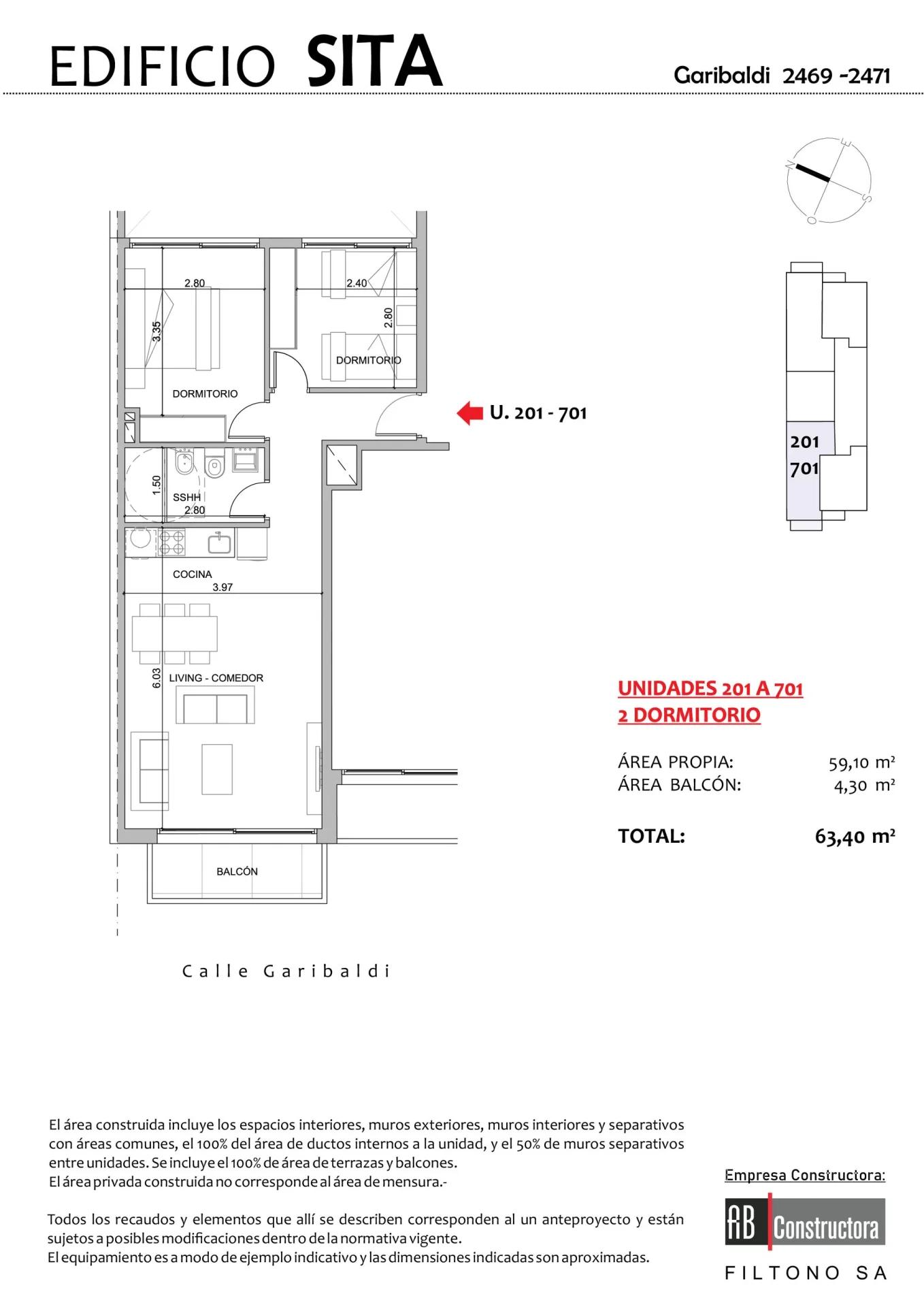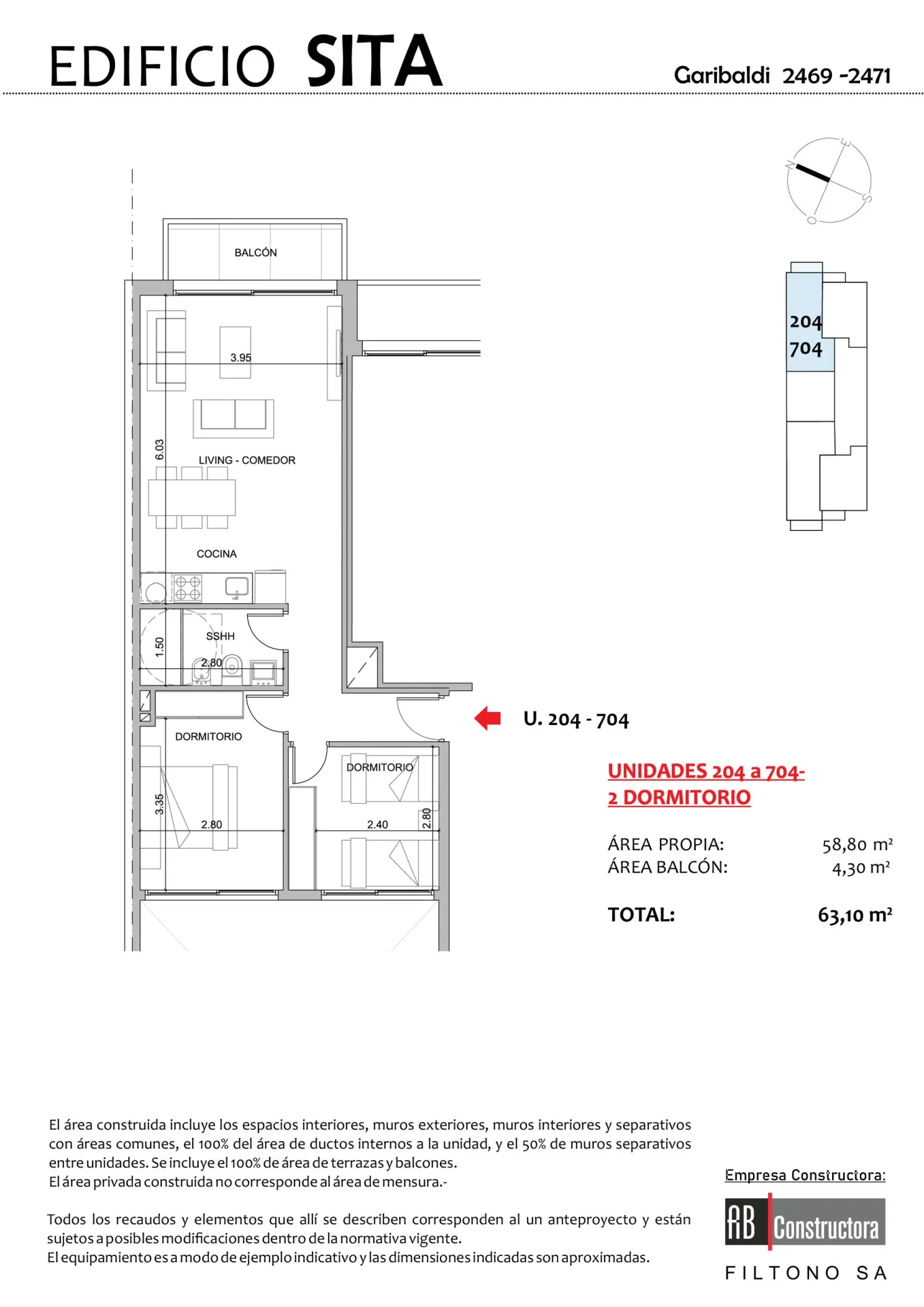 Corredor Responsable: - Contacto: Leticia Ciuti Morena Excelente Ubicación en La Blanqueada Ubicado en un punto estratégico en la esquina de Garibaldi y Emilio Raña. Este proyecto rodeado de servicios y áreas verdes está próximo al Parque Batlle, la terminal Tres Cruces y centros de salud, brindando comodidad y un entorno agradable para sus residentes. La unidad, se encuentra ubicada en un piso 2, con un área propia de 58,50 m2 interiores y 4,30 m2 de balcón, es un apartamento de cómodas dimensiones cerca de todos los servicios. El apartamento cuenta con horno, anafre y campana y también con aire acondicionado tipo split en living y dormitorios. Área de Servicios: En el ultimo piso cuenta con salón de usos múltiples y parrillero en terraza, cuenta asimismo con bicicletero cerrado y un área de lavadero de uso común para la comodidad de los residentes. Beneficios Fiscales Este proyecto está amparado bajo la Ley 18.795 de Viviendas de Interés Social, lo que ofrece a los compradores grandes beneficios impositivos: Exoneración del ITP (Impuesto a las Transmisiones Patrimoniales). Exoneración del IRAE/IRPF sobre las rentas generadas por los alquileres durante 10 años. Exoneración del IP (Impuesto al Patrimonio) por 10 años. Con todos los apartamentos ya vendidos, SITA demuestra ser una oportunidad única para quienes buscan invertir en una ubicación privilegiada con beneficios fiscales significativos y un entorno de calidad. El edificio se desarrolla en 9 niveles: planta baja, siete niveles de apartamentos y un último nivel de salón de usos múltiples y parrillero en terraza. Cuenta con 28 unidades de apartamentos dispuestas con las siguientes características: 14 apartamentos de dos dormitorios y 14 apartamentos de un dormitorio. Esta unidad se encuentra rentada en $30.580 con garantía Mapfre, contrato a 2 años vigente desde Julio 2023. Tributos anual: $6.400 Contribucion anual: $9.300 Cada Oficina es de propiedad, gestión y desarrollo independiente La presente publicación describe las características esenciales del inmueble, debiéndose consultar al responsable de la operación por la eventual actualización de las medidas, descripciones arquitectónicas y funcionales, servicios, impuestos, precios y demás información, cuyos valores son aproximados.