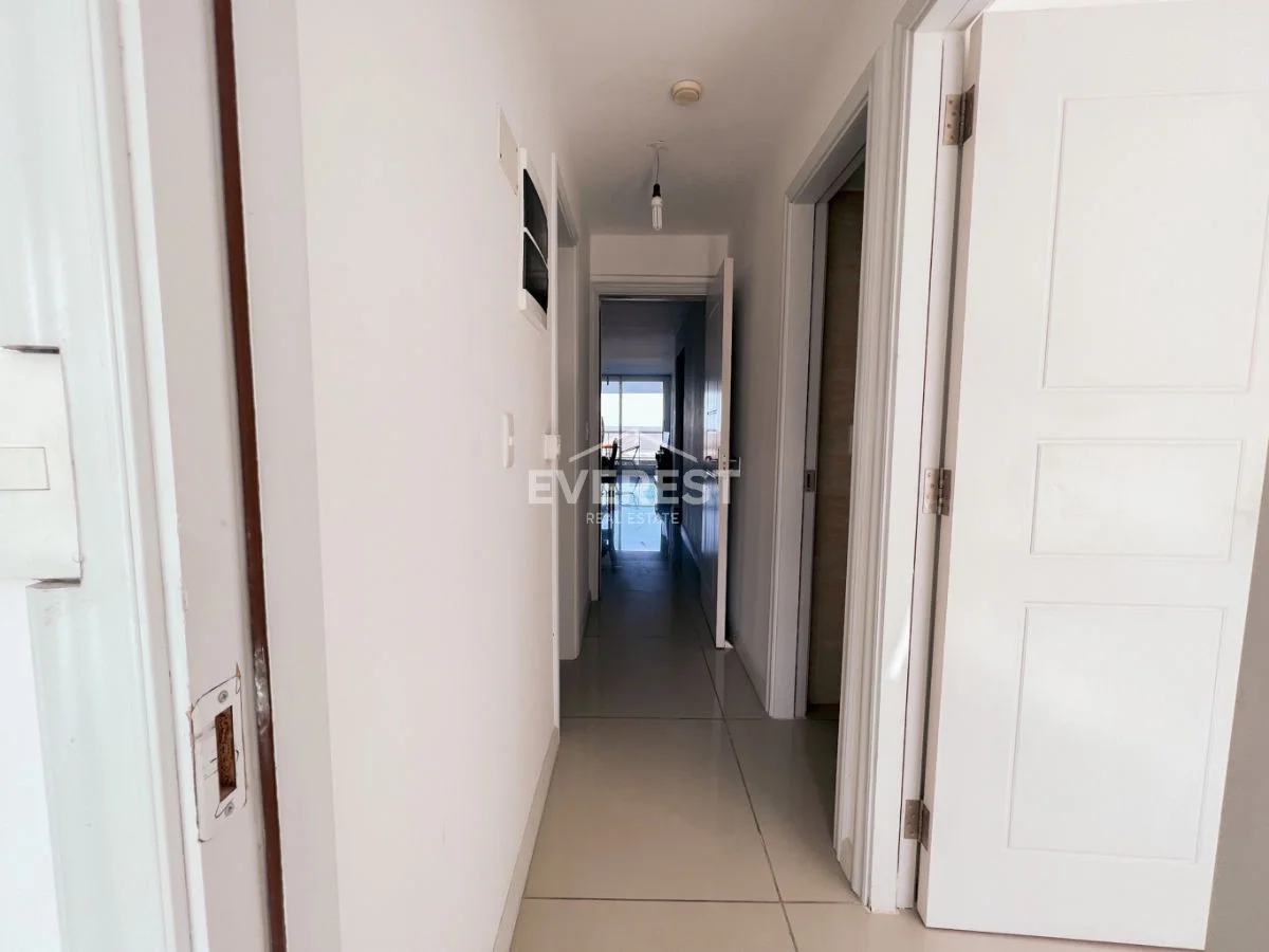 Avanzando por la unidad, nos encontramos con un pasillo hacia la parte norte del apartamento, donde tenemos el baño social sin ducha, el baño completo y los 2 dormitorios absolutamente soleados y ambos con salida a una terraza al contra frente.