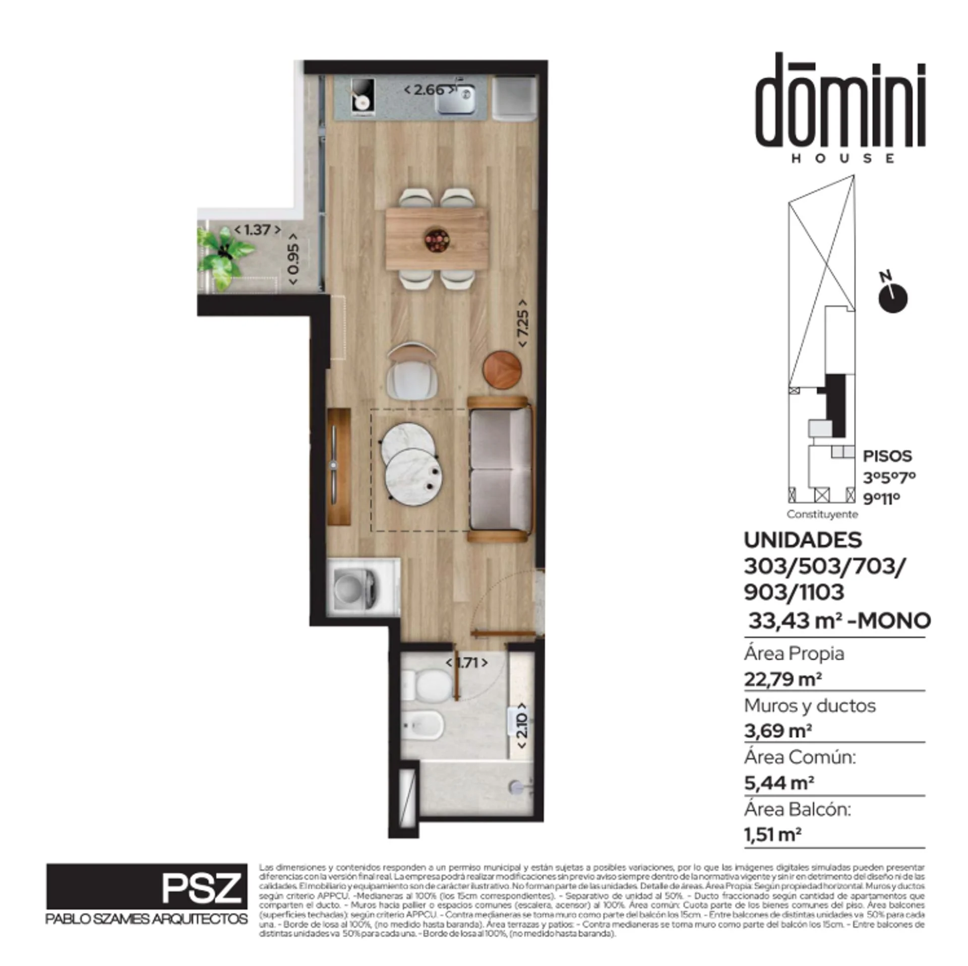 Corredor Responsable: - Contacto: Leticia Ciuti Morena Venta de monoambiente en Cordón, ubicado sobre Constituyente. Estrena en marzo 2026 La unidad cuenta con 22,79m2 edificados y 1,51m2 de terraza. Al entrar al apartamento con encontramos con el baño a la izquierda, al frente se encuentra el área del living y el dormitorio. Hacia la derecha nos encontramos con la cocina que cuenta con salida a la terraza. En el último piso, los residentes disfrutan de excelentes amenities: una barbacoa totalmente equipada con cocina y parrillero, una terraza lounge con vistas panorámicas, gimnasio completo y un playroom/espacio teen, pensados para el disfrute y la vida social. Las unidades se destacan por su diseño y confort: cuentan con cerraduras digitales, previsión para aire acondicionado, cocinas con mesada de granito, anafe vitrocerámico y muebles bajo mesada, pisos vinílicos símil madera, y previsión para horno eléctrico empotrado y lavarropas. Los cerramientos son de aluminio con cortinas de enrollar tipo monoblock, garantizando aislamiento y funcionalidad. Entre los servicios adicionales, se incluyen laundry en subsuelo con lavarropas y secarropas que funcionan con tarjeta, bicicletero, espacio para clasificación de residuos, y un ascensor de última tecnología con acceso directo al salón de usos múltiples. Garajes aparte desde U$S 19.000 El proyecto se encuentra amparado en la Ley 18.795 Ley de Vivienda Promovida por lo que cuenta con: Exoneración del ITP Exoneración de IRAE/IRPF/IRNR a las rentas generadas de los alquileres por 10 años. Exoneración del IP por 10 años. OPCIONES DE PAGO: Durante obra: reserva 10%, compromiso 20%, durante obra 60% y ocupación 10%. Financiación con banco: reserva 5%, compromiso 5%, durante obra 10% y ocupación 80% Contado Compartimos con todos los colegas. Cada Oficina es de propiedad, gestión y desarrollo independiente La presente publicación describe las características esenciales del inmueble, debiéndose consultar al responsable de la operación por la eventual actualización de las medidas, descripciones arquitectónicas y funcionales, servicios, impuestos, precios y demás información, cuyos valores son aproximados.