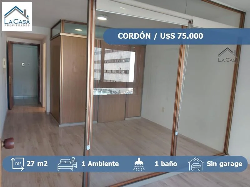 Venta de Apartamento Monoambiente en Cordón, ideal para Oficina o destino habitacional o inversión para renta, próximo a Faculta de Derecho y diversos servicios.