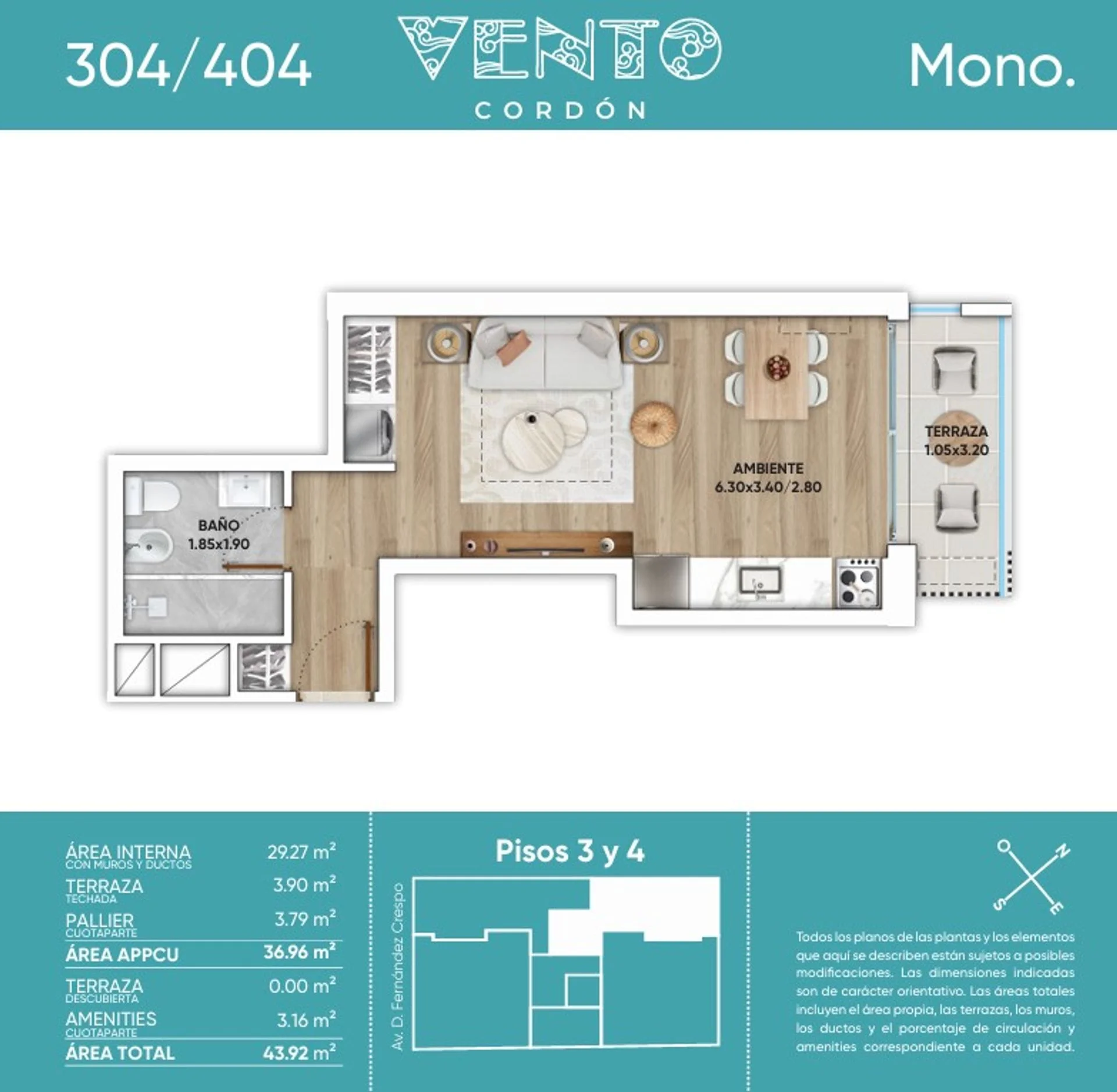 Corredor Responsable: - Contacto: Valeria Cruz Venta Cordon Monoambiente Estrena 2026 Vento Cordon, Ubicado ensobre Fernández Crespo entre Uruguay y Paysandú a 2 cuadras del Bps y 18 de Julio. Estrena Junio 2026 Es proyecto moderno y funcional de construcción tradicional pensado tanto para vivir como inversión. Amenities: Espacio común tipo SUM / cowork con parrillero interior, barra, estar y doble terraza solárium panorámica Laundry Disponemos de Showroom para ver terminaciones. Gastos de ocupación 4,5% Además, el proyecto se desarrolla al amparo de la Ley de Vivienda Promovida (Ley 18.795), lo que brinda importantes beneficios fiscales para inversores: Exoneración del ITP Exoneración del IRAE/IRPF sobre alquileres por 10 años Exoneración del Impuesto al Patrimonio por 10 años Cada Oficina es de propiedad, gestión y desarrollo independiente La presente publicación describe las características esenciales del inmueble, debiéndose consultar al responsable de la operación por la eventual actualización de las medidas, descripciones arquitectónicas y funcionales, servicios, impuestos, precios y demás información, cuyos valores son aproximados.