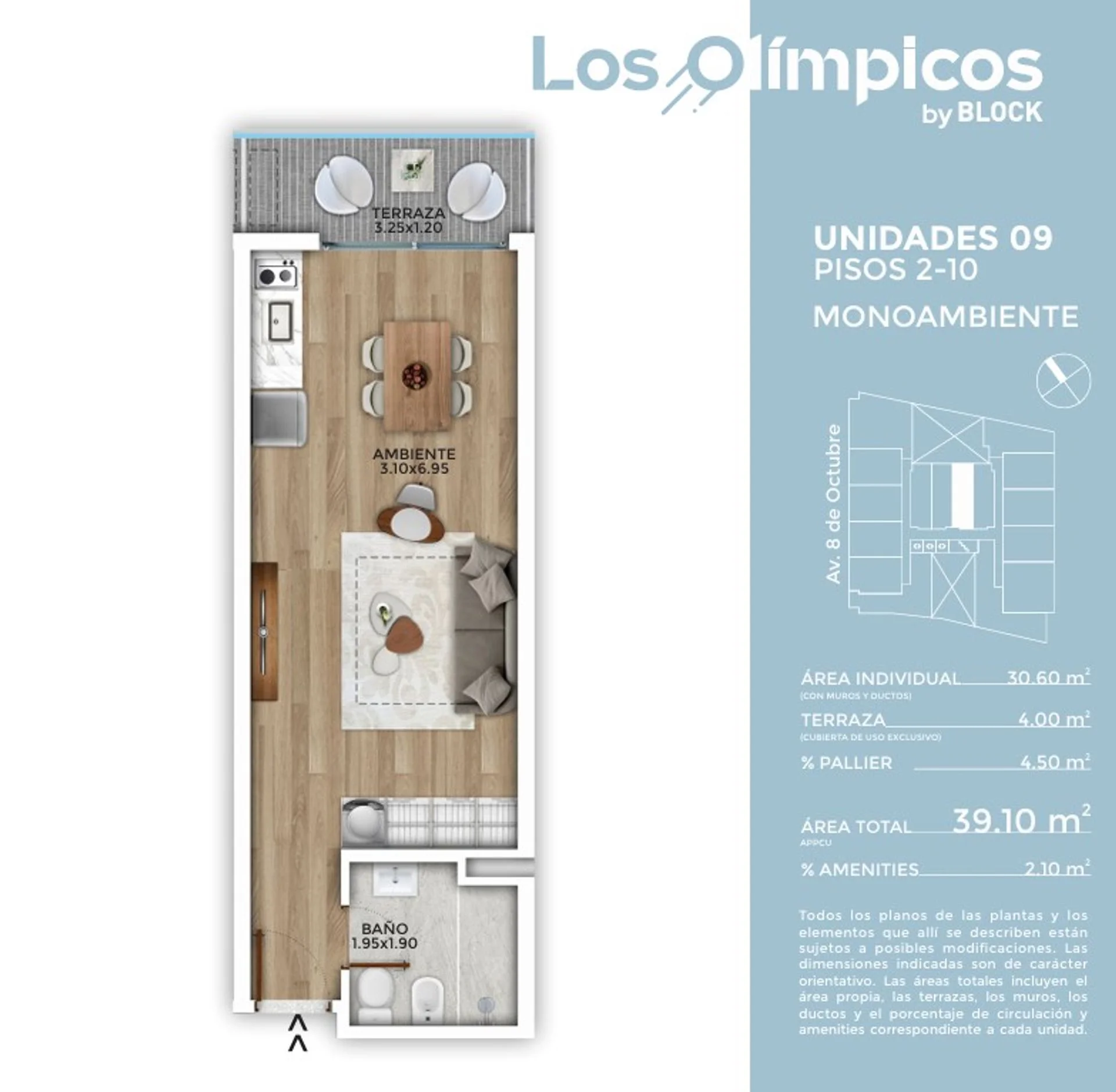 Corredor Responsable: - Contacto: Valeria Cruz A Estrenar! Venta Apartamento Monoambiente con Terraza en Los Olímpicos, ubicado en el corazón de La Blanqueada 8 de Octubre a pasos de Luis A. de Herrera y Larrañaga. Amenities El piso 11 - Piscina, Co-work, SUM equipado, parrillero, Micro cine, laundry y gimnasio. Ultimas unidades disponibles. Monoambiente El proyecto se realiza al amparo de la Ley de Vivienda Promovida por lo que cuenta con: - Exoneración del ITP - Exoneración de IRAE/IRPF a las rentas generadas de los alquileres por 10 años - Exoneración del IP por 10 años Empresa con más de diez proyectos construidos y exitosos que garantizan trayectoria, confianza y solidez. Cada Oficina es de propiedad, gestión y desarrollo independiente La presente publicación describe las características esenciales del inmueble, debiéndose consultar al responsable de la operación por la eventual actualización de las medidas, descripciones arquitectónicas y funcionales, servicios, impuestos, precios y demás información, cuyos valores son aproximados.