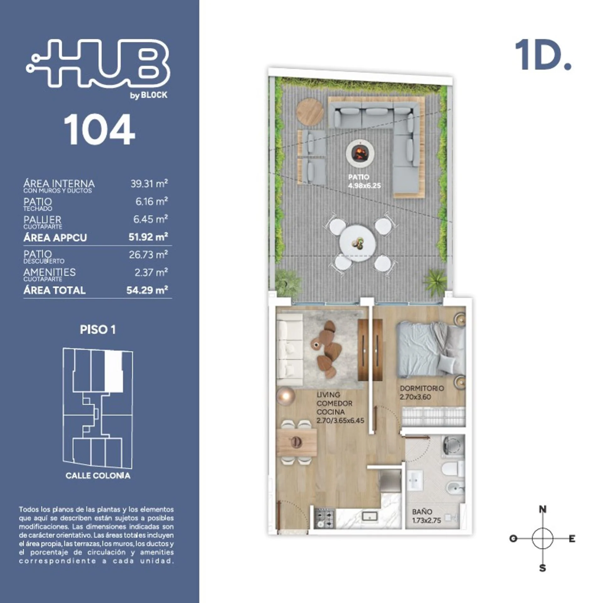 Corredor Responsable: - Contacto: Valeria Cruz Venta Cordon 1 dormitorio con Patio y Amenities en Pozo HUB by Block, ubicado en el barrio de Cordón - Colonia y M.C Martinez - a pasos de 18 de Julio y Tres Cruces. Consulte por DESCUENTO exclusivo de Lanzamiento. Estrena Diciembre 2027 (obra ya iniciada). Consulte por unidades con patios exclusivos increíbles. Proyectado en 11 pisos con 98 apartamentos monoambientes, 1 y 2 dormitorios. Construcción tradicional y excelente terminaciones que podemos visitar en apartamento modelo. Contará con amenities de categoría: - Piscina con deck solarium - Sum con parrillero - Cowork sala de lectura - Gym espacio yoga - Microcine playroom - Laundry con app - Cerradura electrónica - Estación carga vehículos eléctricos - Racks de soporte para bicicletas - Free wifi en áreas comunes - Cámaras CCTV de seguridad El Proyecto que se ampara bajo la Ley 18.795 (Ley de Vivienda Promovida) por lo que cuenta con: - Exoneración del ITP - Exoneración de IRAE/IRPF a las rentas generadas de los alquileres por 10 años - Exoneración del IP por 10 años ¡Excelente oportunidad de inversión! Cada Oficina es de propiedad, gestión y desarrollo independiente La presente publicación describe las características esenciales del inmueble, debiéndose consultar al responsable de la operación por la eventual actualización de las medidas, descripciones arquitectónicas y funcionales, servicios, impuestos, precios y demás información, cuyos valores son aproximados.