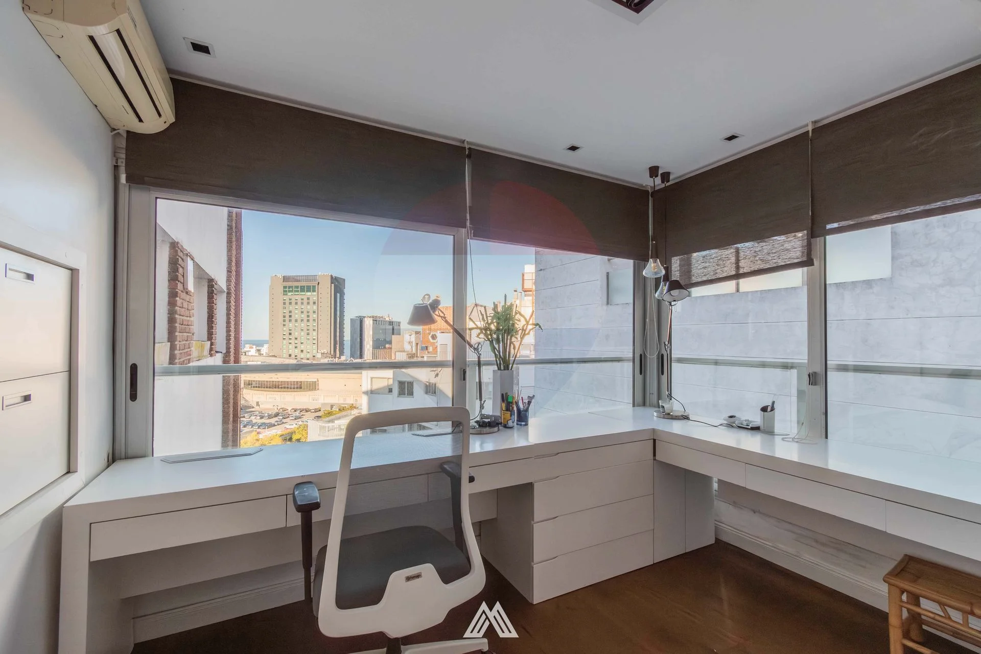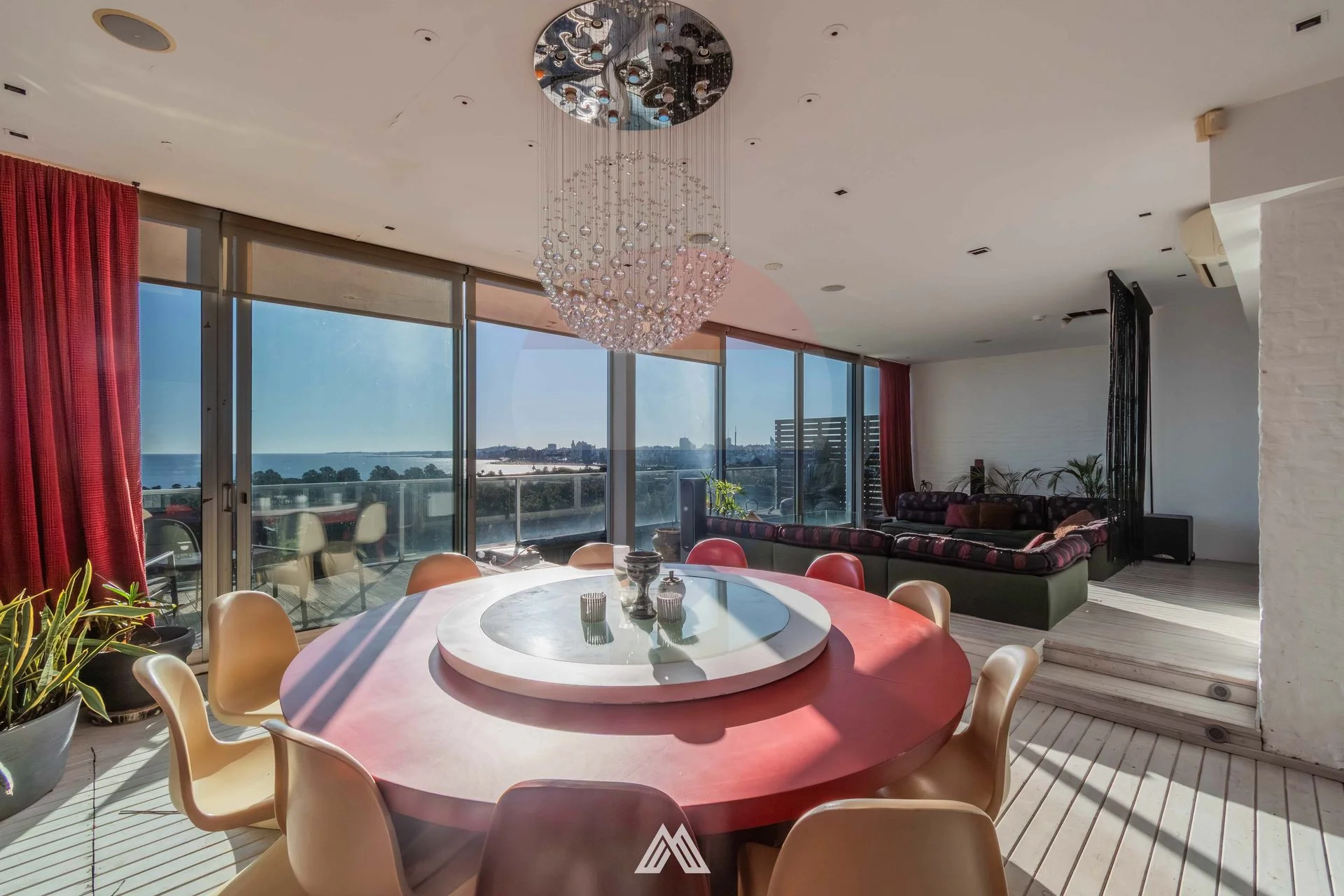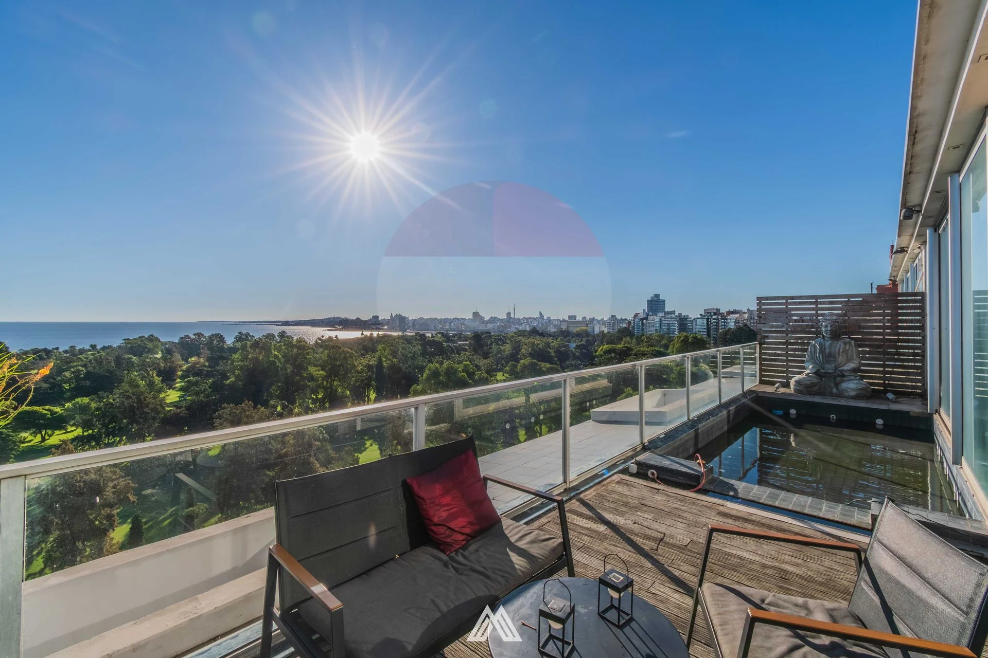Corredor Responsable: - Contacto: Ornella Regina Penthouse dúplex único en El Golf | Vistas panorámicas al golf y a la bahía | Terminaciones de primer nivel Oportunidad excepcional Penthouse dúplex de categoría, completamente reciclado en 2009 con terminaciones de altísima calidad y tecnología de punta. Una propiedad única en su estilo, con dos plantas privadas, cuatro terrazas y vistas panorámicas tanto hacia el golf como hacia la bahía de Montevideo. Planta baja (piso 10) La entrada recibe con un hall distribuidor que da paso a un living-comedor amplio y luminoso con salida a gran terraza al oeste, donde las vistas al golf y a la bahía generan un ambiente de total privilegio. El estar diario conecta fluidamente con el escritorio —equipado con mobiliario importado y vistas despejadas hacia el este— y con la gran cocina definida, que incluye mesada y barra desayunadora. El área de servicio cuenta con lavadero, baño y dormitorio independiente. Baño social y espacio guardapolvo completan los ambientes de uso común. La zona privada incluye un dormitorio en suite con vestidor, jacuzzi, baño completo con doble sector de bachas y salida a terraza con vista al golf; además de dos dormitorios amplios con placares, orientación este, salida a terrazas propias y baño completo con bañera. Planta alta (piso 11) Accesible tanto por el ascensor principal como por escalera interior privada. Esta planta fue diseñada para el entretenimiento y el disfrute: barbacoa con amplia área social integrada, parrillero con barra, fuegos de paellera, sistema de sonido funcional y conexión para lavavajilla. Cava de vinos y baño completo. La carpintería de aluminio de 2,85 m genera vistas panorámicas hacia el frente y el este. La terraza solarium al frente cuenta con piscina climatizada con hidromasajes para 6 personas; la terraza posterior ofrece vistas abiertas al este. Detalles y equipamiento Domótica Bang & Olufsen en ambas plantas. Grifería Hansgrohe. Pisos de madera de ingeniería premium (tablas de 22 cm × 2,20 m) en toda la planta baja, incluyendo baño principal, cocina y lavadero. Cielorrasos de yeso con iluminación embutida. Aire acondicionado en todos los ambientes. Calefacción central a gas. Amplio garage con entrada independiente. El edificio ofrece gimnasio, portería 24 horas y circuito cerrado de cámaras de seguridad. Cada Oficina es de propiedad, gestión y desarrollo independiente La presente publicación describe las características esenciales del inmueble, debiéndose consultar al responsable de la operación por la eventual actualización de las medidas, descripciones arquitectónicas y funcionales, servicios, impuestos, precios y demás información, cuyos valores son aproximados.