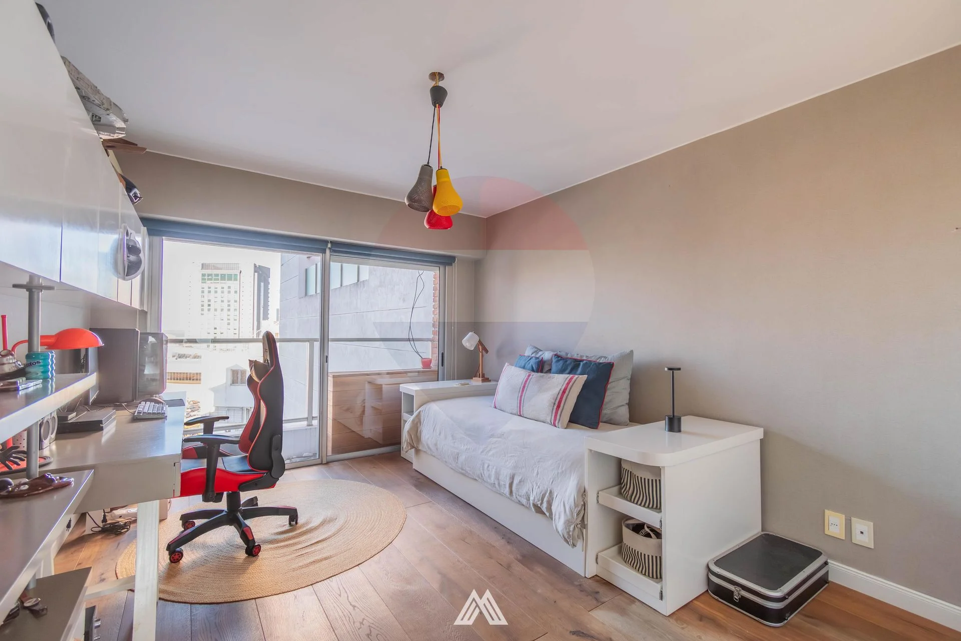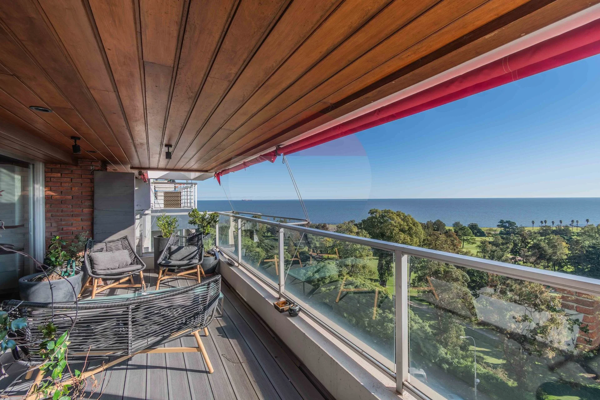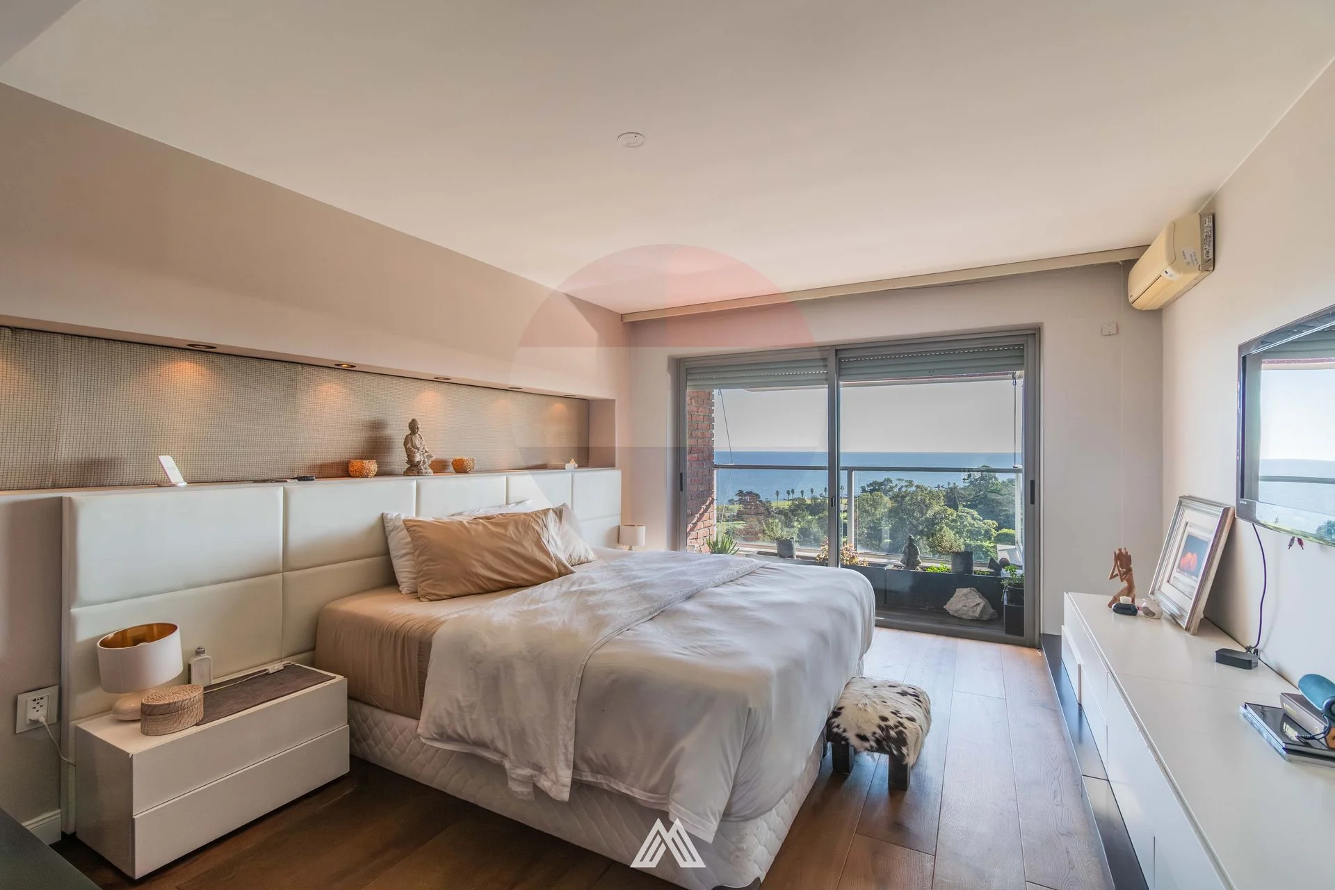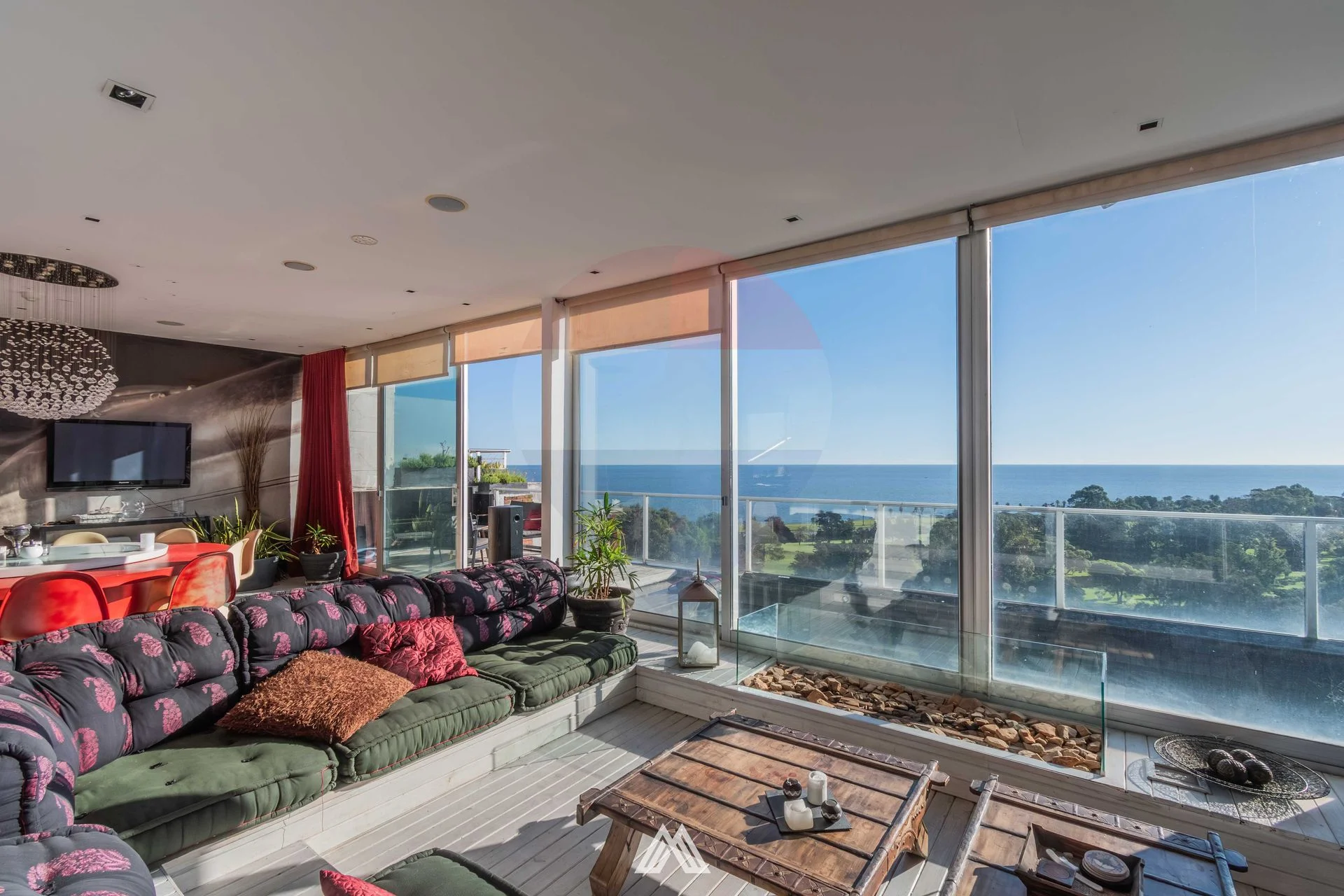 Corredor Responsable: - Contacto: Ornella Regina Penthouse dúplex único en El Golf | Vistas panorámicas al golf y a la bahía | Terminaciones de primer nivel Oportunidad excepcional Penthouse dúplex de categoría, completamente reciclado en 2009 con terminaciones de altísima calidad y tecnología de punta. Una propiedad única en su estilo, con dos plantas privadas, cuatro terrazas y vistas panorámicas tanto hacia el golf como hacia la bahía de Montevideo. Planta baja (piso 10) La entrada recibe con un hall distribuidor que da paso a un living-comedor amplio y luminoso con salida a gran terraza al oeste, donde las vistas al golf y a la bahía generan un ambiente de total privilegio. El estar diario conecta fluidamente con el escritorio —equipado con mobiliario importado y vistas despejadas hacia el este— y con la gran cocina definida, que incluye mesada y barra desayunadora. El área de servicio cuenta con lavadero, baño y dormitorio independiente. Baño social y espacio guardapolvo completan los ambientes de uso común. La zona privada incluye un dormitorio en suite con vestidor, jacuzzi, baño completo con doble sector de bachas y salida a terraza con vista al golf; además de dos dormitorios amplios con placares, orientación este, salida a terrazas propias y baño completo con bañera. Planta alta (piso 11) Accesible tanto por el ascensor principal como por escalera interior privada. Esta planta fue diseñada para el entretenimiento y el disfrute: barbacoa con amplia área social integrada, parrillero con barra, fuegos de paellera, sistema de sonido funcional y conexión para lavavajilla. Cava de vinos y baño completo. La carpintería de aluminio de 2,85 m genera vistas panorámicas hacia el frente y el este. La terraza solarium al frente cuenta con piscina climatizada con hidromasajes para 6 personas; la terraza posterior ofrece vistas abiertas al este. Detalles y equipamiento Domótica Bang & Olufsen en ambas plantas. Grifería Hansgrohe. Pisos de madera de ingeniería premium (tablas de 22 cm × 2,20 m) en toda la planta baja, incluyendo baño principal, cocina y lavadero. Cielorrasos de yeso con iluminación embutida. Aire acondicionado en todos los ambientes. Calefacción central a gas. Amplio garage con entrada independiente. El edificio ofrece gimnasio, portería 24 horas y circuito cerrado de cámaras de seguridad. Cada Oficina es de propiedad, gestión y desarrollo independiente La presente publicación describe las características esenciales del inmueble, debiéndose consultar al responsable de la operación por la eventual actualización de las medidas, descripciones arquitectónicas y funcionales, servicios, impuestos, precios y demás información, cuyos valores son aproximados.