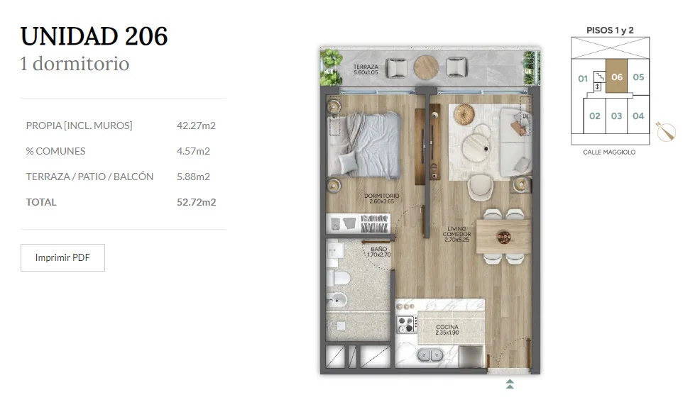 Montevideo todavía conserva rincones urbanos que, como por arte de magia, escapan del vértigo de la ciudad. En medio de los dos parques costeros más pintorescos de Montevideo, el Golf y el Parque Rodó, se ubica Déco Maggiolo, una nueva propuesta de residencias exclusivas con el sello distintivo de Pires Benlian Desarrollos.. El barrio es dueño de un particular encanto. Su clima apacible y su carácter residencial lo hacen ideal para instalar tu hogar. Parece increíble que a pocas cuadras se pueda acceder a una variada infraestructura de servicios.. Se trata de una zona elevada sobre el nivel del mar y el proyecto arquitectónico lo aprovecha al máximo con grandes ventanales de piso a techo y amplias terrazas continuas y traslúcidas para deleitarse con la vista y la brisa fresca del mar. En Déco Maggiolo vas a experimentar la paz de sentirte lejos, viviendo en plena ciudad. Comercializamos en exclusividad las siguientes unidades. Unidad 206 1 dormitorio - precio de venta USD 179.500 (unidad publicada) Unidad 101 2 dormitorios - precio de venta USD 322.900 Gastos de conexión para todos 4% Gastos comunes aproximado 1 dormitorio $ 5.500 y 2 dormitorio $ 8.500 Como promoción para estas unidades exclusivamente se entregan con Horno, Anafe, Campana, Mampara, Espejo de Baño, Luminarias, Calefón, Heladera Acero Inox y Microondas. Fecha estimada para la entrega de los departamentos Marzo 2026 Honorarios inmobiliaria 3% + IVA No dude en realizar la consulta y poder ver cada una de las tipologías y detalles de las unidades. Todos los datos fueron suministrados por el desarrollo.