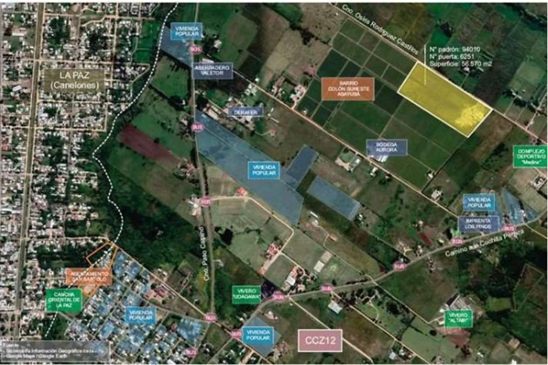 Corredor Responsable: - Contacto: Andrea Ceriani Se trata de un predio de 5 hectáreas 6569 metros, sobre Camino Osiris Rodriguez Castillo 6251. Consta de una dependencia para oficinas, galpones donde se ubican los talleres, estacionamiento, planta hormigonera, luz trifásica , pozo de agua de 10.000 lts/hora. El estado general de las construcciones es bueno y se encuentra muy próximo de acceso perimetral y ruta 5. La superficie edificada es el 1110m2. Ideal para emprendimiento rural combinado con otro rubro. Comisión inmobiliaria 3% + IVA. Cada Oficina es de propiedad, gestión y desarrollo independiente La presente publicación describe las características esenciales del inmueble, debiéndose consultar al responsable de la operación por la eventual actualización de las medidas, descripciones arquitectónicas y funcionales, servicios, impuestos, precios y demás información, cuyos valores son aproximados.