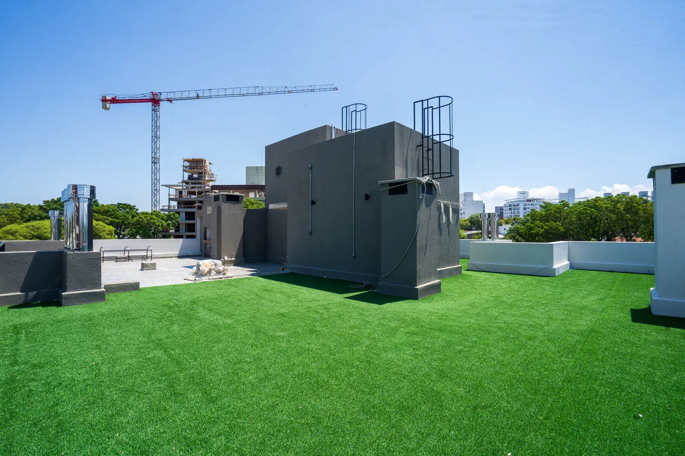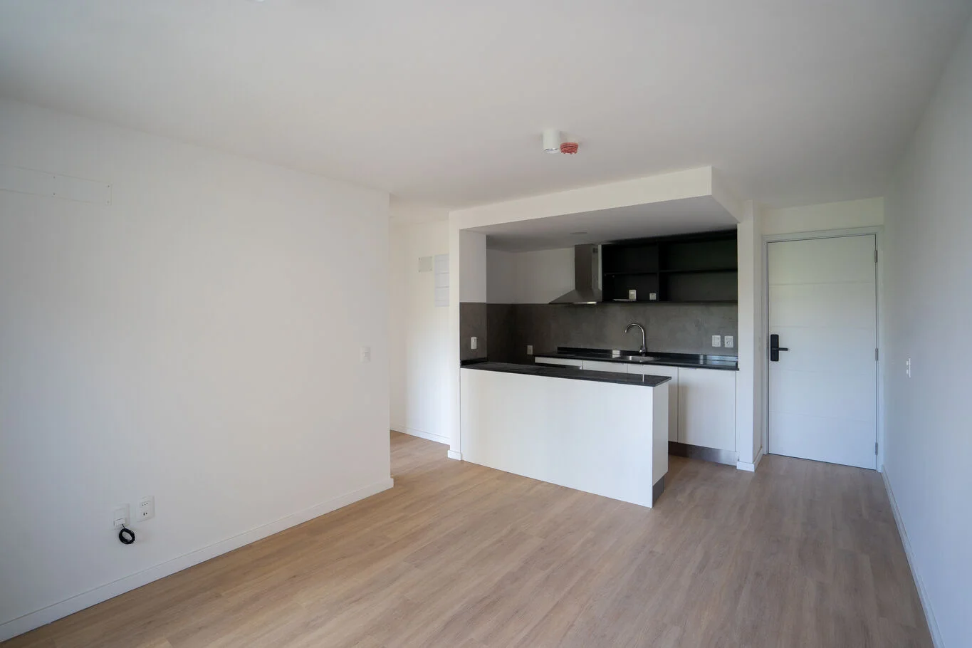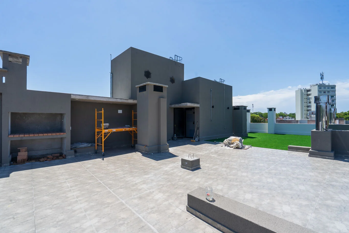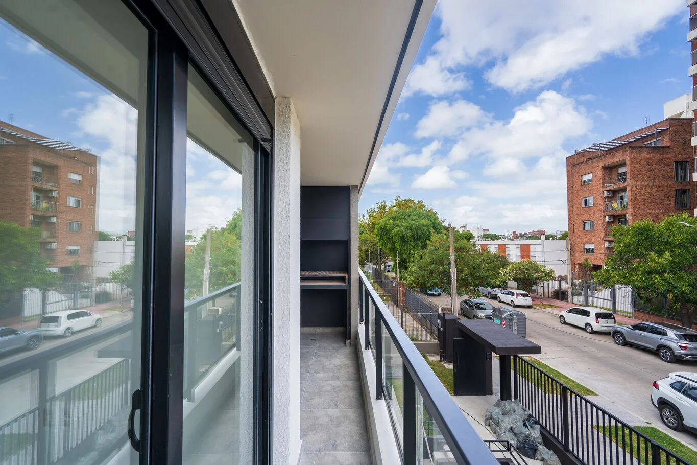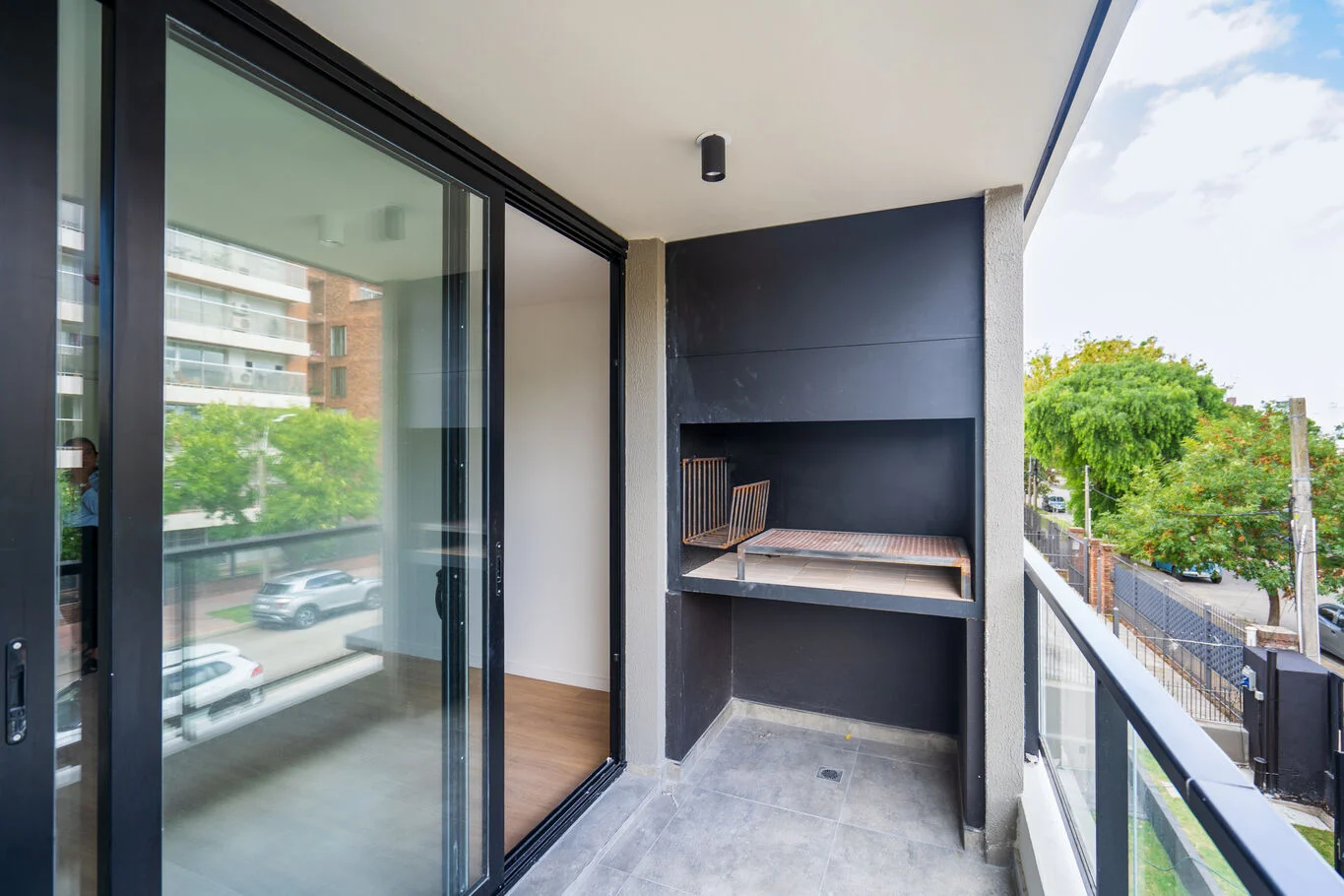 Living con cocina integrada por barra. Cocina con horno, anafe y campana empotrado. Terraza con parrillero. Un dormitorio. Un baño. En el ultimo piso el edificio cuenta con un area común para estar al aire libre y parrillero.
