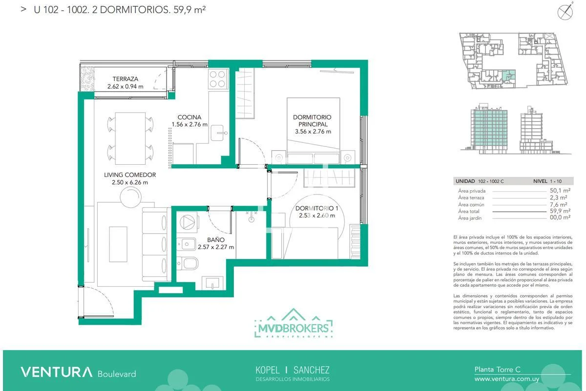 Nota: La información gráfica y escrita contenida en el presente aviso es meramente a título estimativo y no forma parte de ningún tipo de documentación contractual. Las medidas y superficies definitivas surgirán del título de propiedad del inmueble referido. Asimismo, los importes de impuestos, tasas, servicios y gastos comunes aquí indicados están sujetos a verificación por parte del potencial comprador. El precio y disponibilidad del inmueble indicado en el presente pueden ser modificados sin previo aviso.