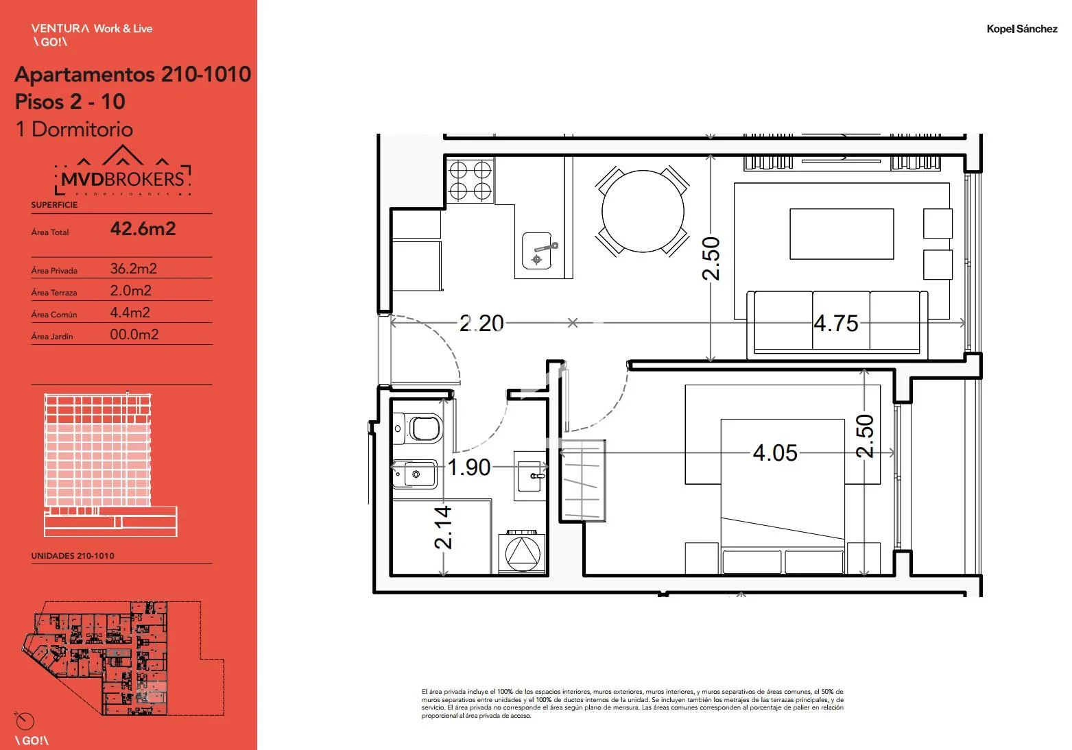 Área Interna 36 m² | Terraza 2 m².