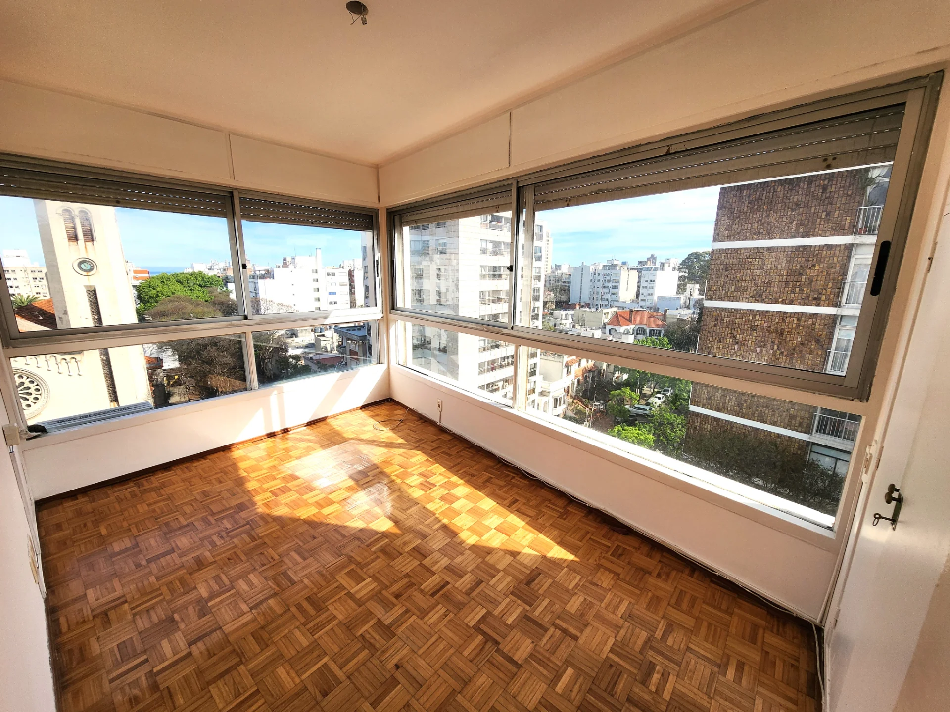 En una zona tranquila de Pocitos, con lugar para estacionar, plaza enfrente y la iglesia San Juan Bautista. Próximo a Av. Brasil, a 26 de Marzo, a la Rambla.
