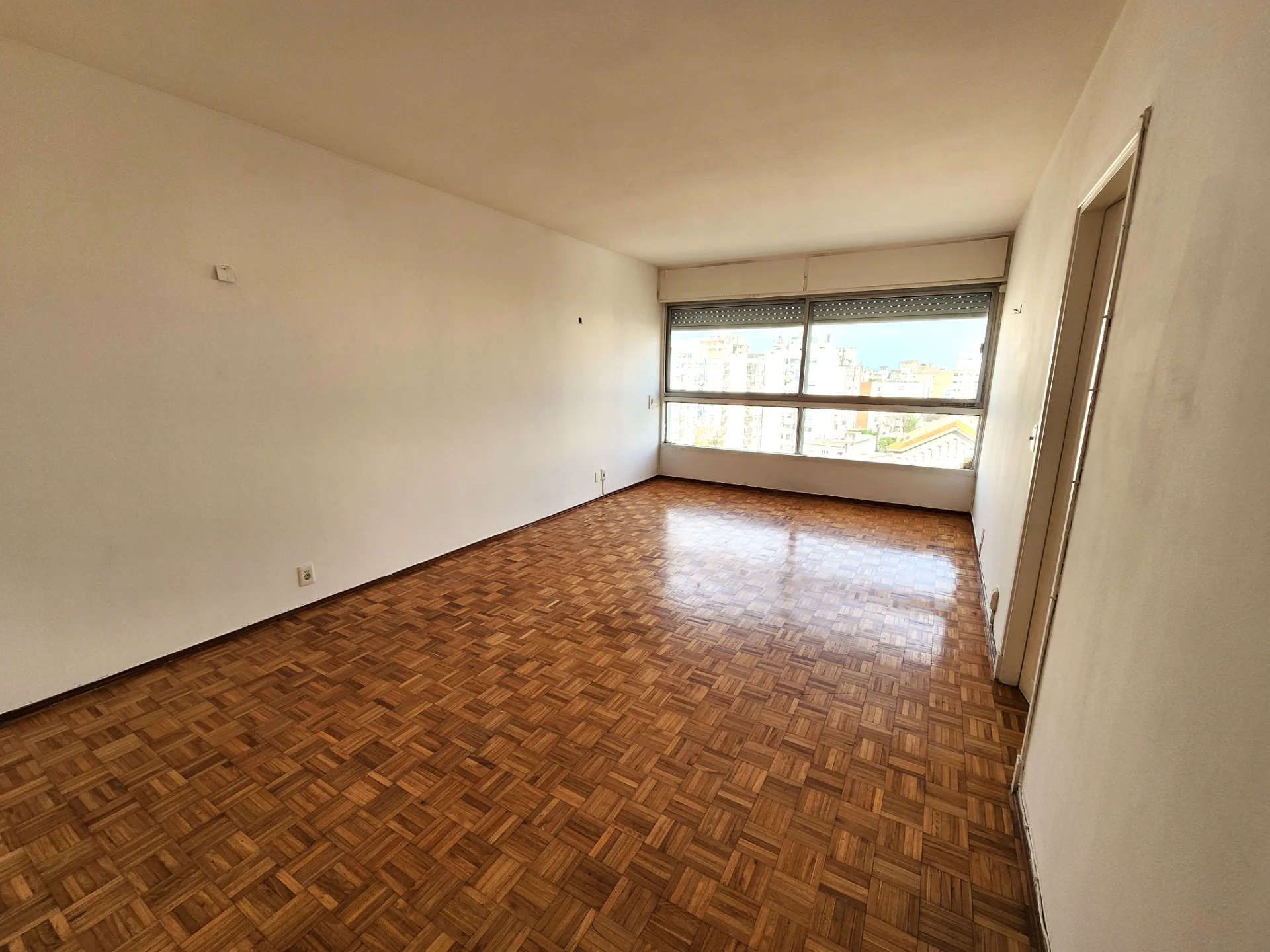 Amplio living comedor con ventanal al frente y cortina de enrollar automatizada.