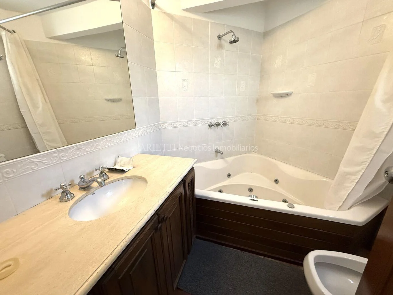 Casa clásica del Carrasco totalmente actualizada. . A una cuadra de la Rambla, y tres de Arocena. 2 plantas. Pallier de entrada, living con estufa a leña, comedor, cocina, servicio/ despacho chico, 2 baños , el garage transformado en otro despacho. En PA: 3 dormitorios ( suite), 2 baños.