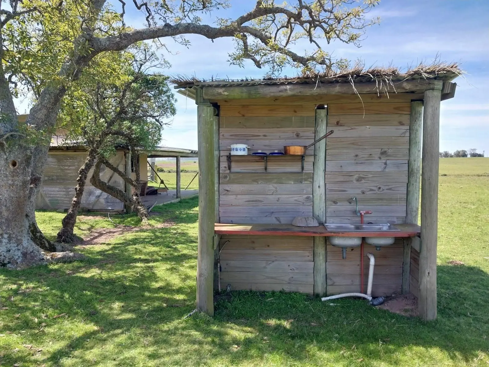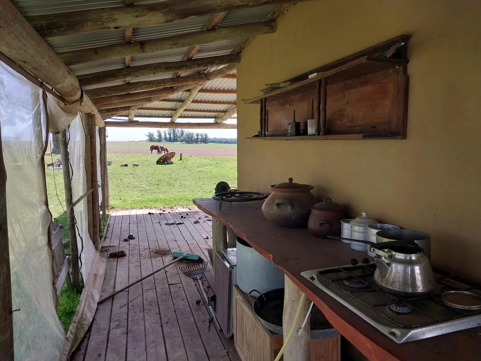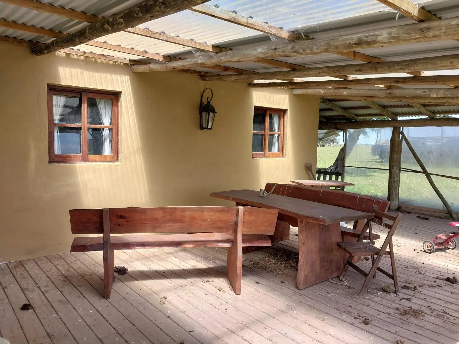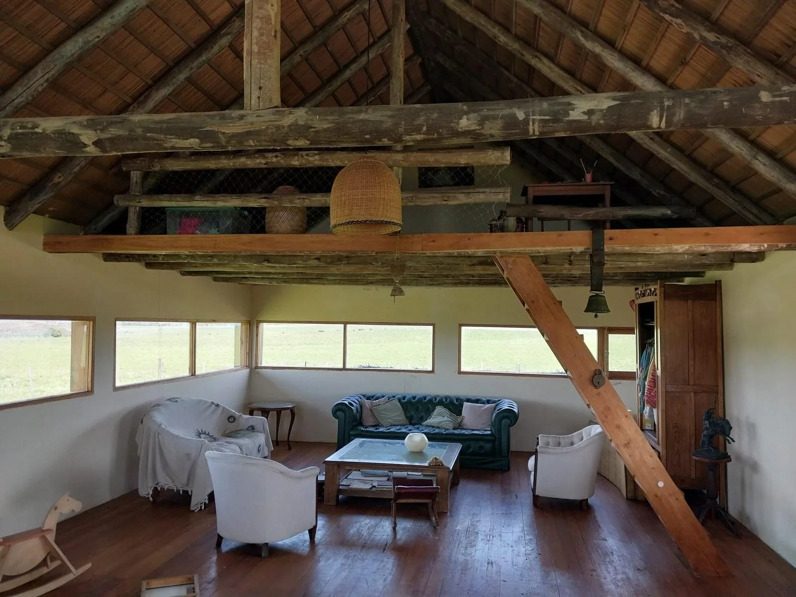 En cuanto a la infraestructura, hay 2 casas independientes separadas unos 300 metros una de la otra. La primer casa es una vieja construcción de campo reciclada y convertida en un loft de 50m2 (cocina y baño exteriores) y más de 100m2 de galerías. Está en un punto elevado rodeada de parque y arboles y muy lindas vistas. La segunda casa fue receintemente construida y consta de un loft de 120m2 hecho en madera y techo quinchado con una cocina integrada a amplio living comedor y altillo. Separados hay 2 dormitorios externos de aproximadamente 30m2 cada uno y un baño. Hay energía eléctrica por paneles solares y perforación de agua con bomba y tanque aereo. La energía de UTE pasa por la portera de entrada.