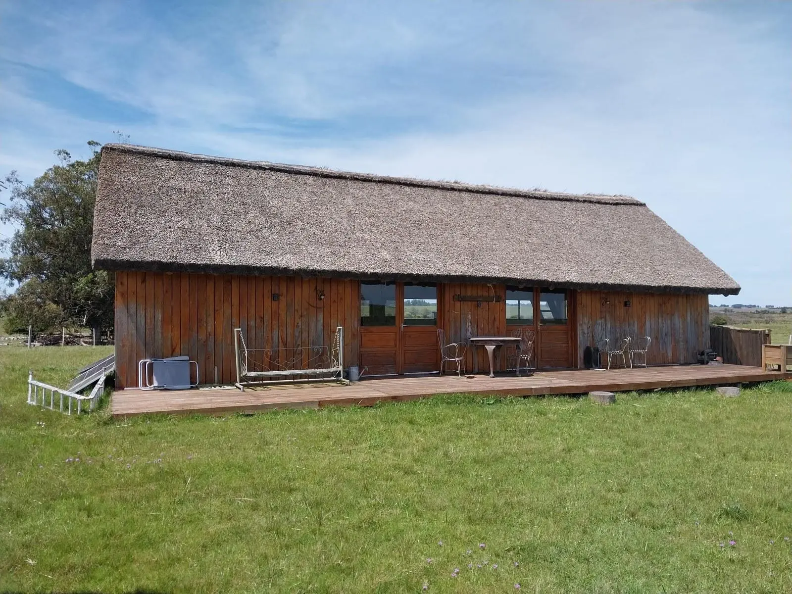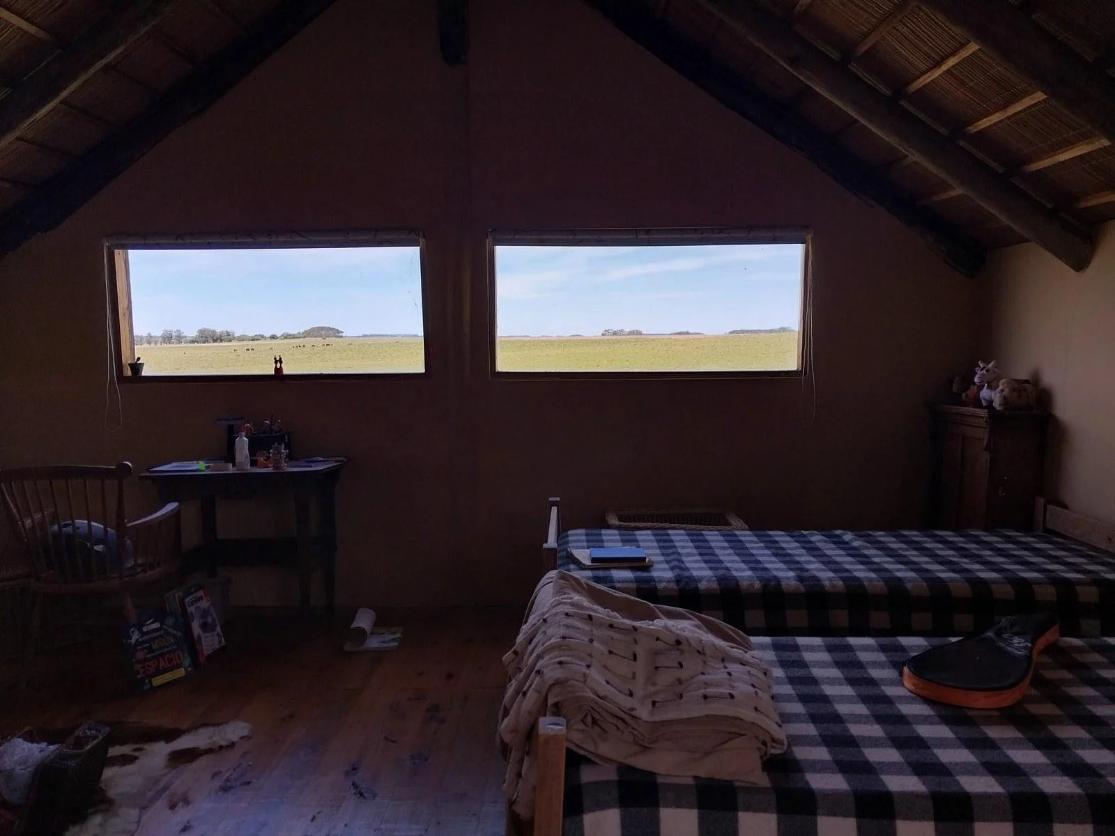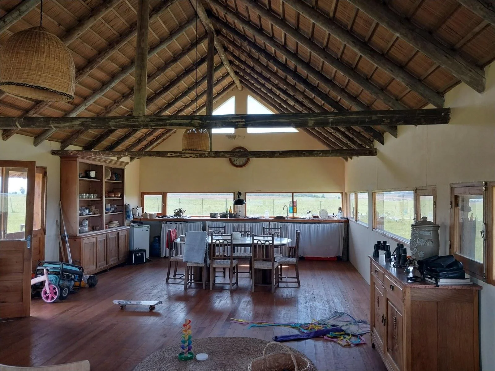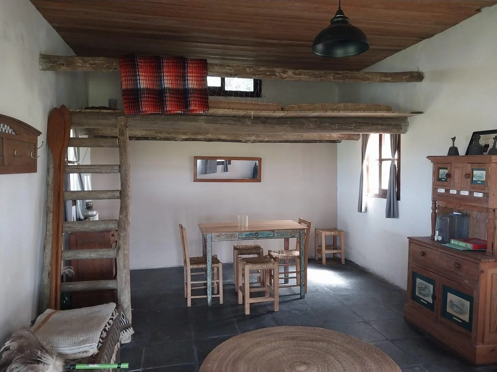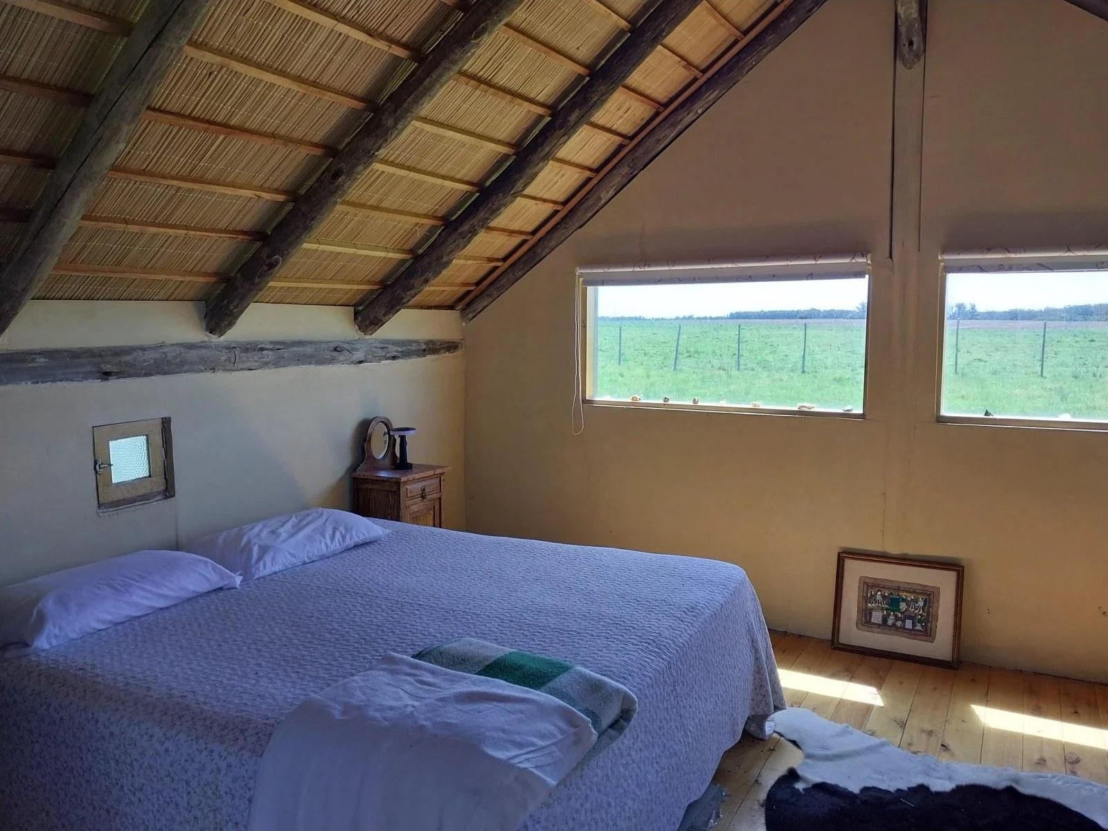 En cuanto a la infraestructura, hay 2 casas independientes separadas unos 300 metros una de la otra. La primer casa es una vieja construcción de campo reciclada y convertida en un loft de 50m2 (cocina y baño exteriores) y más de 100m2 de galerías. Está en un punto elevado rodeada de parque y arboles y muy lindas vistas. La segunda casa fue receintemente construida y consta de un loft de 120m2 hecho en madera y techo quinchado con una cocina integrada a amplio living comedor y altillo. Separados hay 2 dormitorios externos de aproximadamente 30m2 cada uno y un baño. Hay energía eléctrica por paneles solares y perforación de agua con bomba y tanque aereo. La energía de UTE pasa por la portera de entrada.