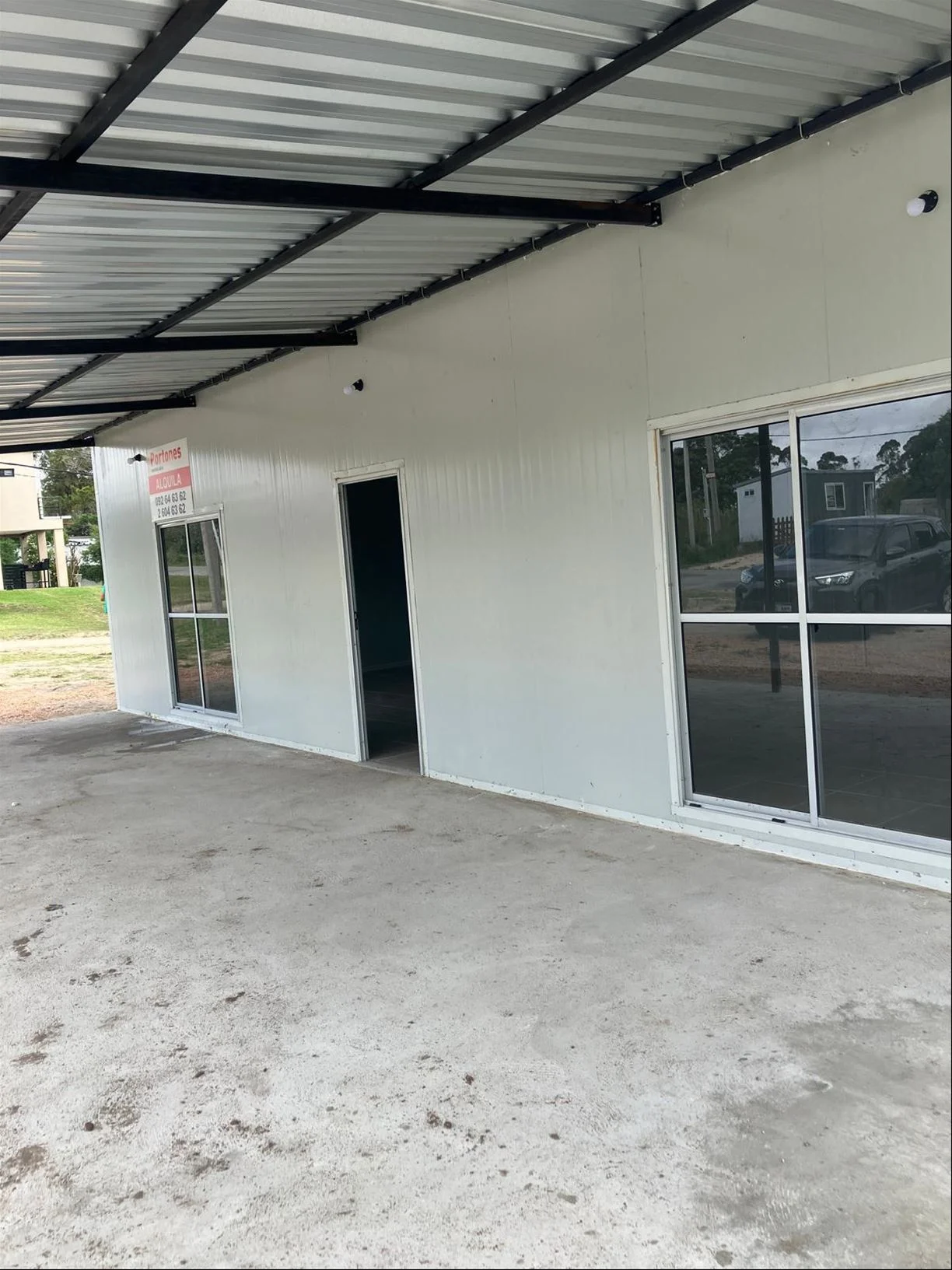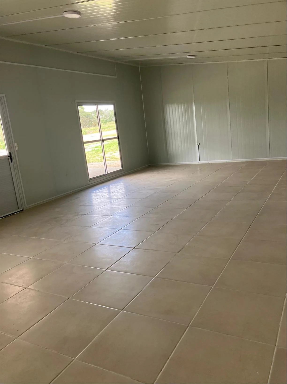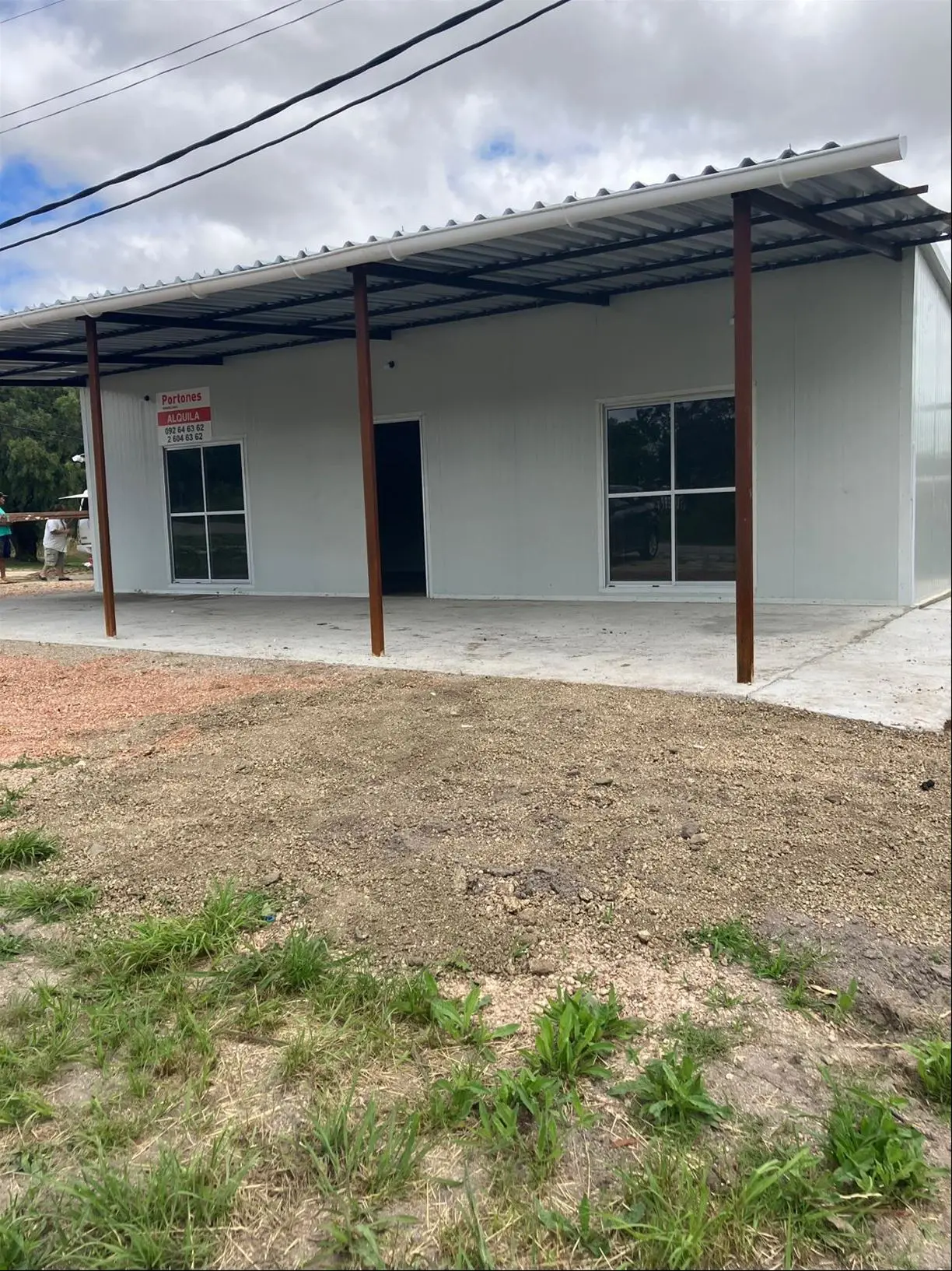 El mismo posee 12 m de frente por 5 m de largo con baño y kitchenette un total de 60 m2 además cuenta con un alero de 4 m por 12 m de largo.