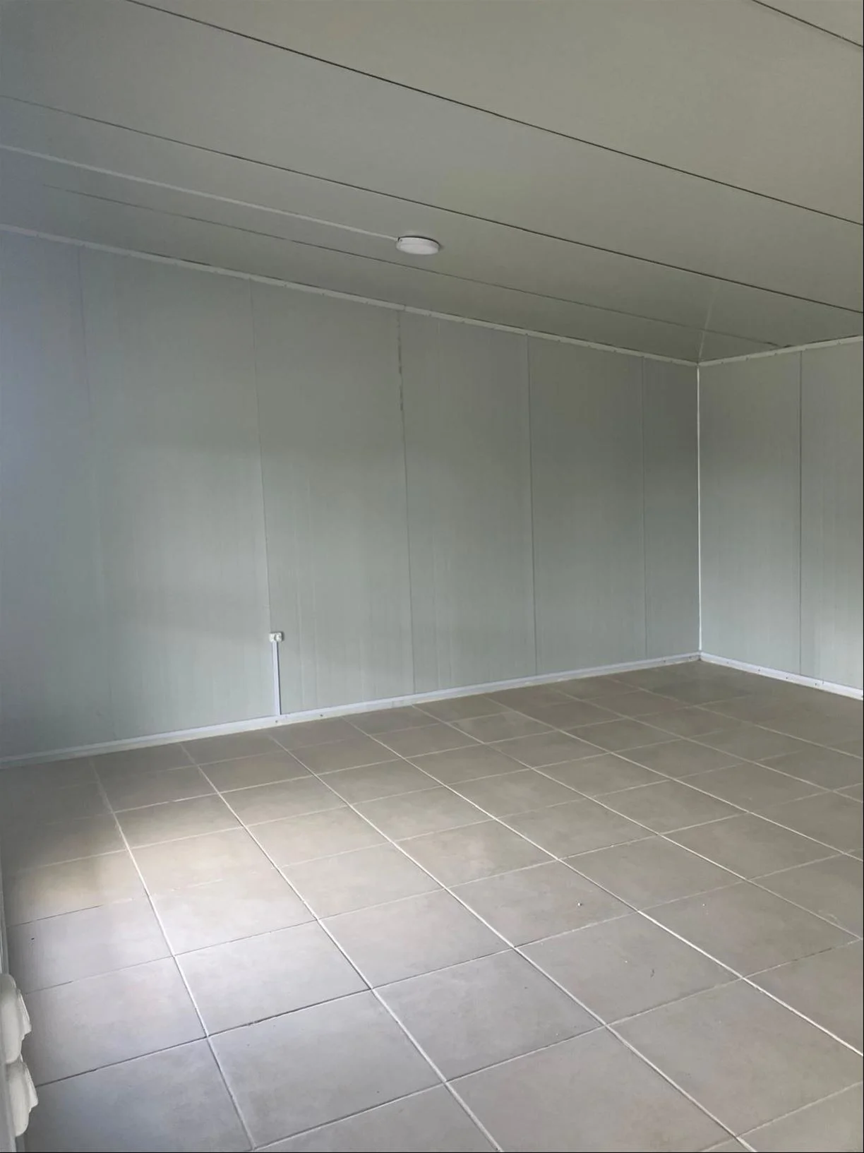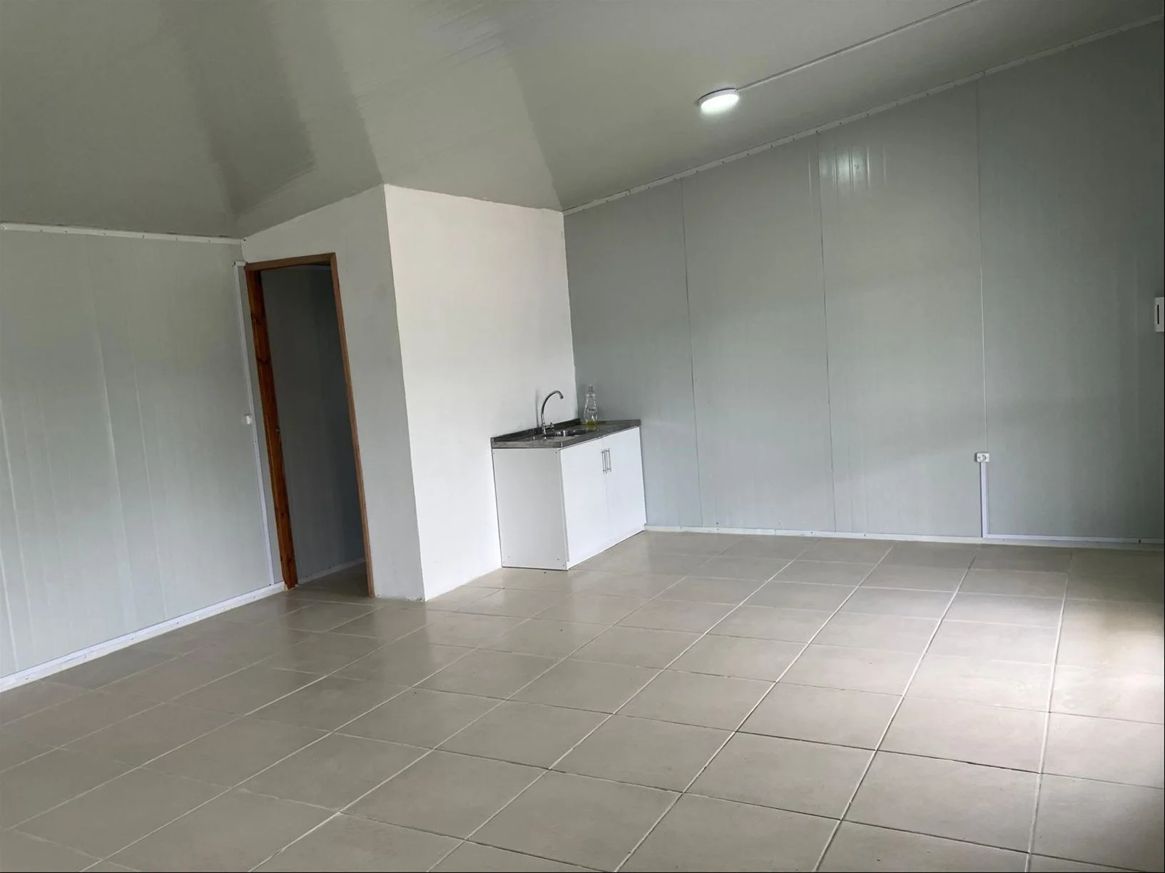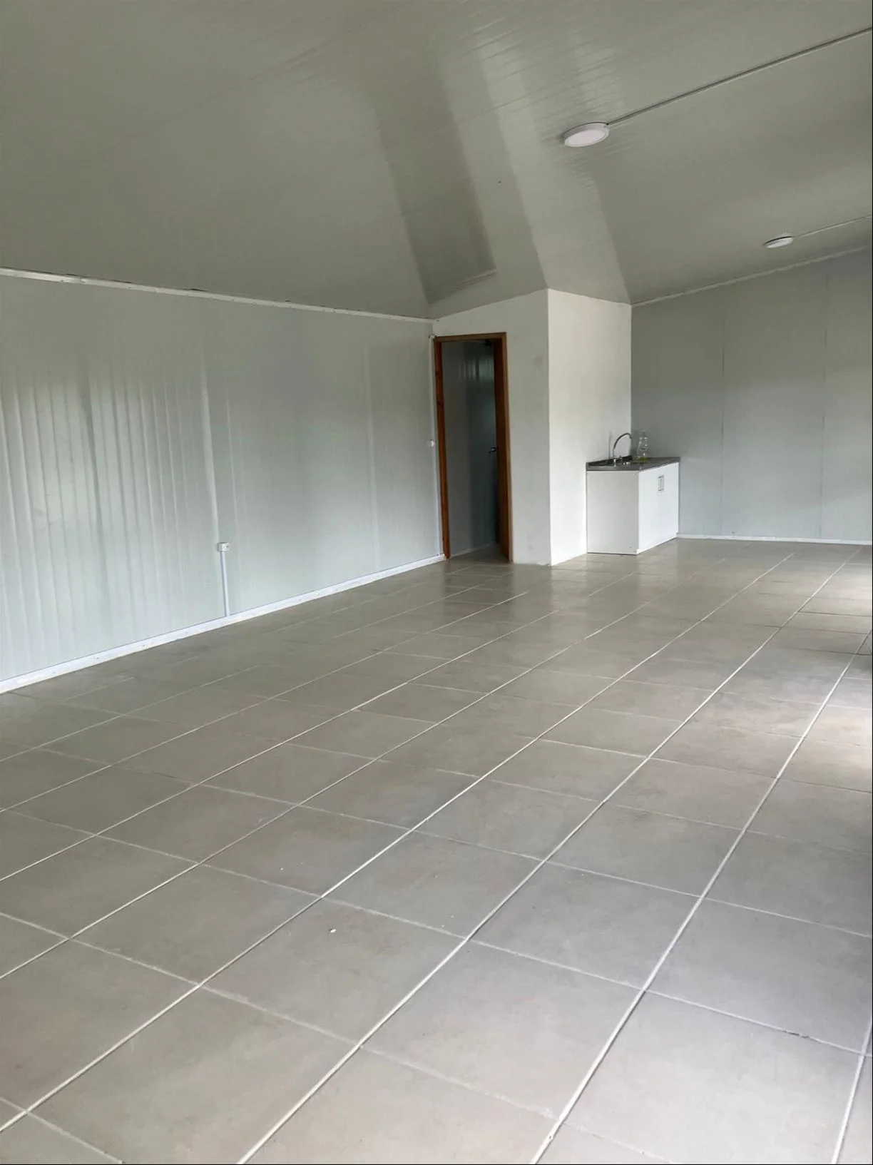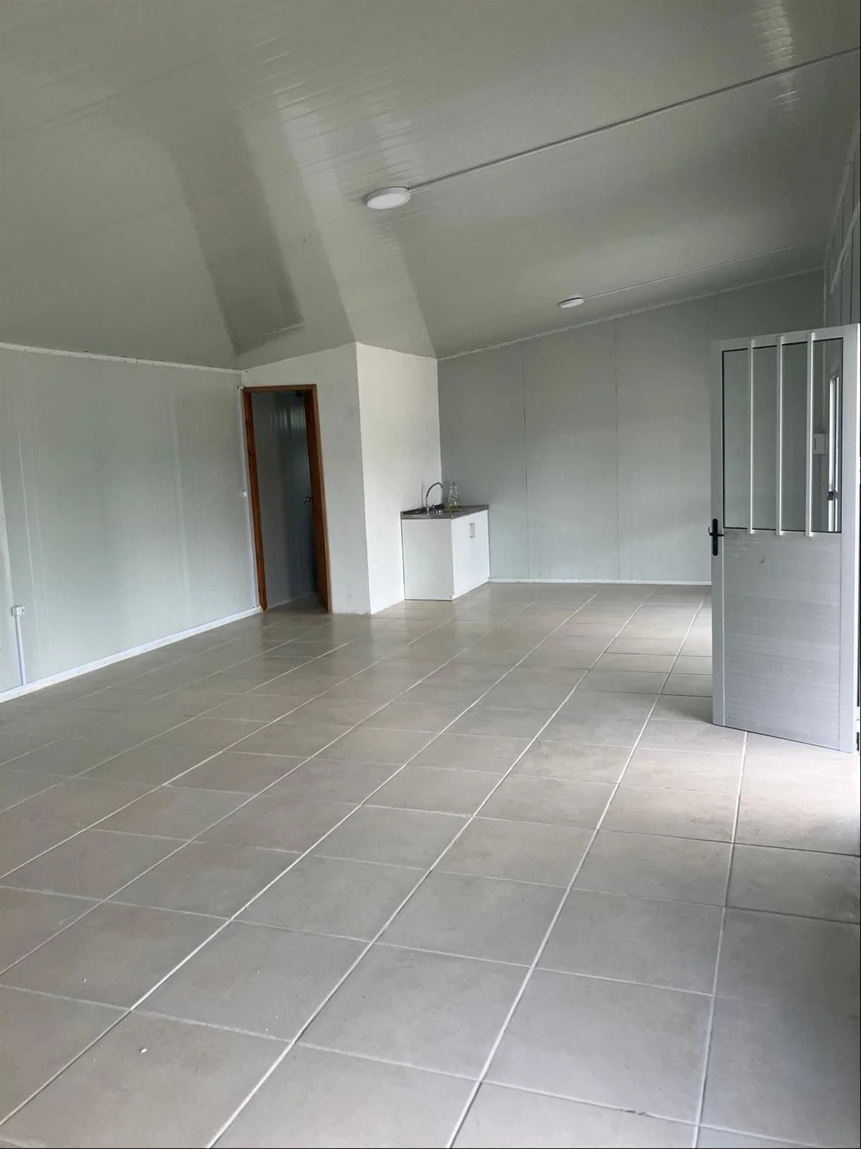 El mismo posee 12 m de frente por 5 m de largo con baño y kitchenette un total de 60 m2 además cuenta con un alero de 4 m por 12 m de largo.