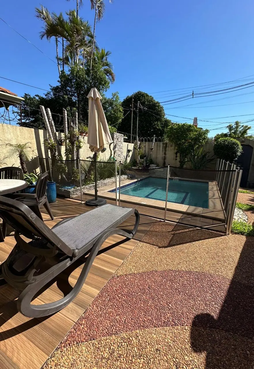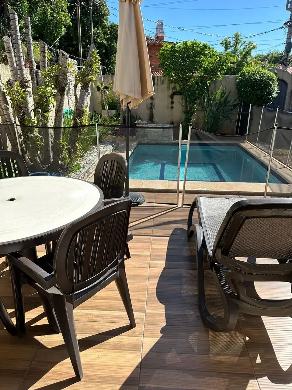 Patio frente con piscina con Deck
