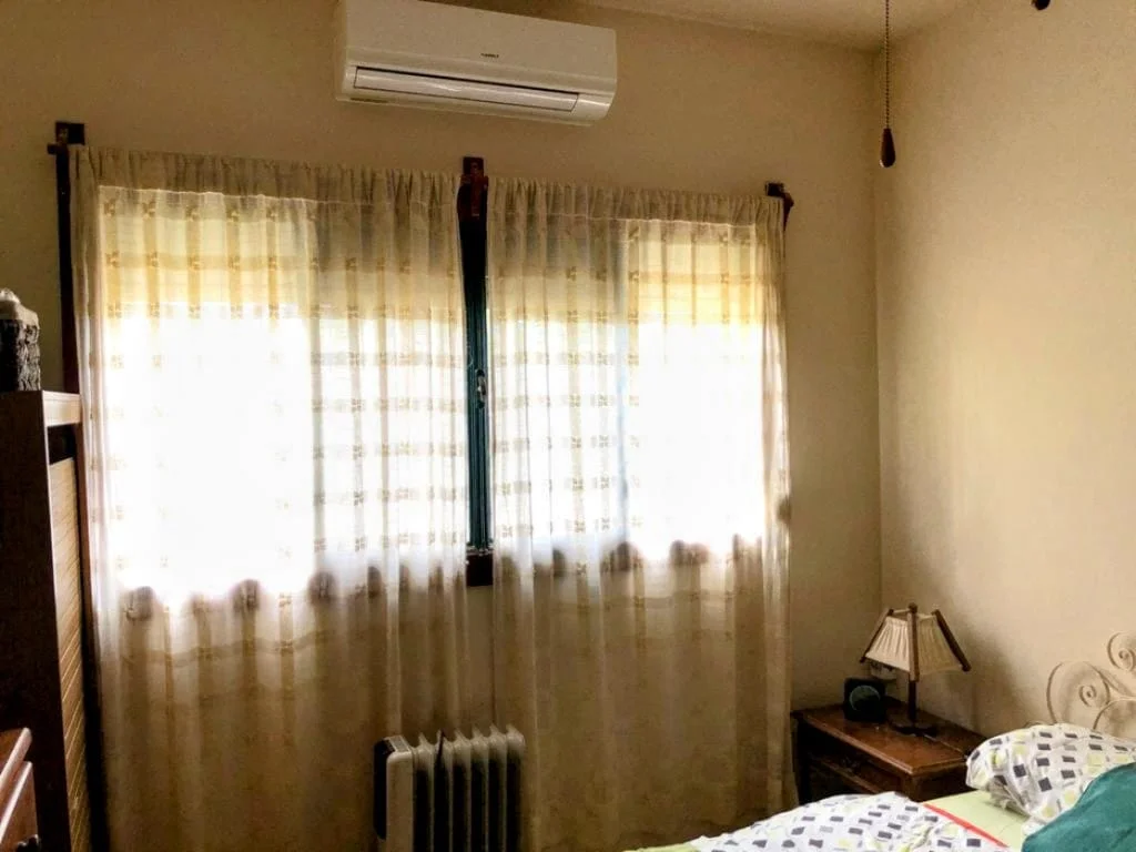 Tiene un dormitorio con placard grande de madera buena, ventilador de techo y aire acondicionado.