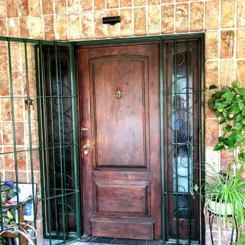 Aberturas de aluminio con rejas. Puerta de entrada blindada.