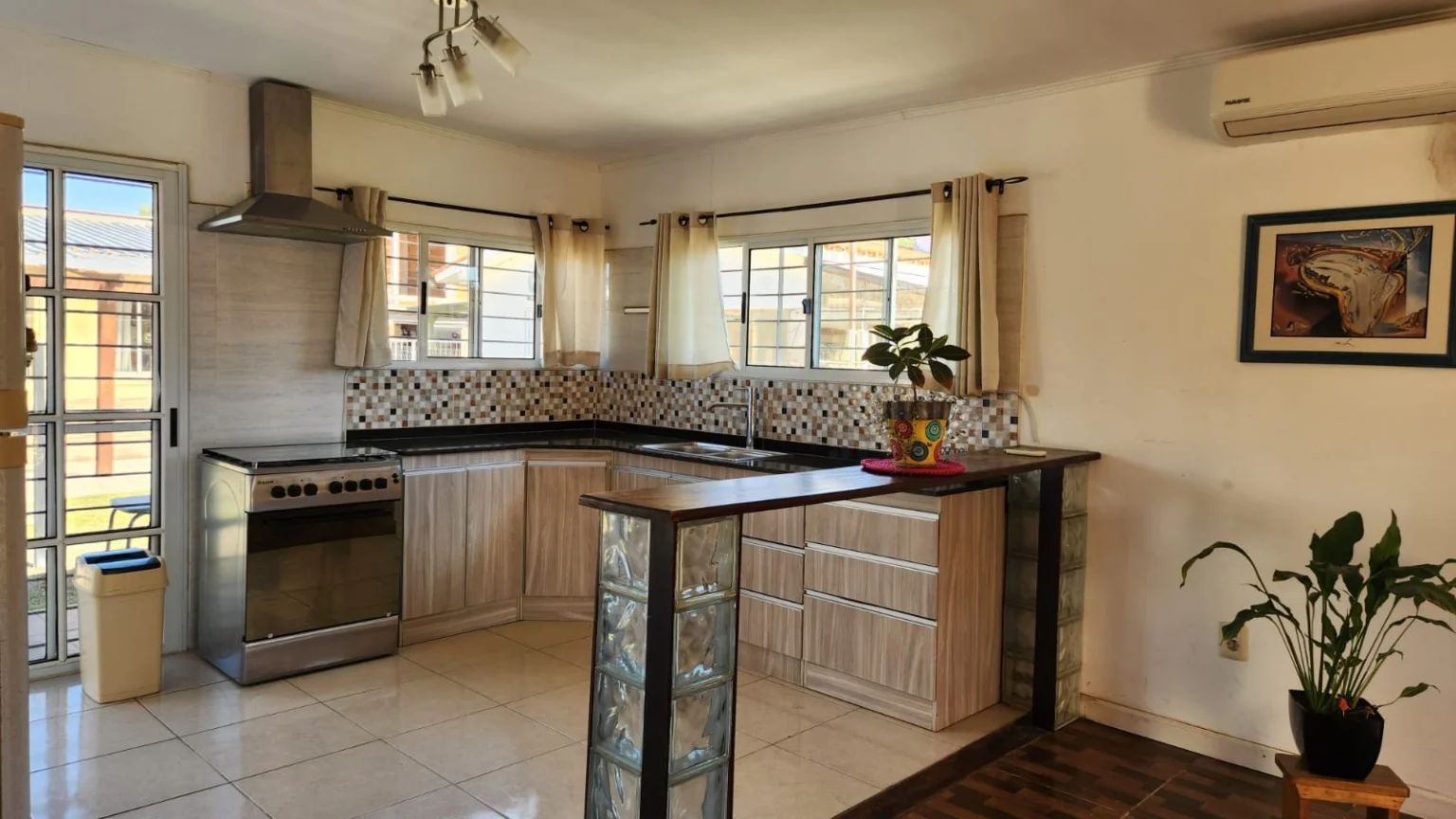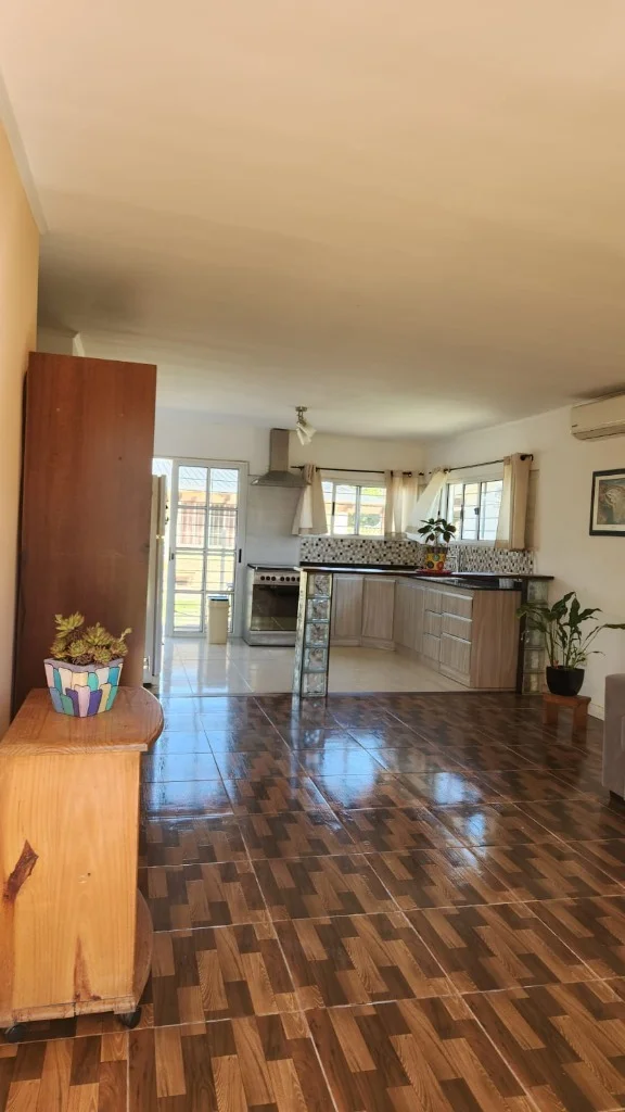 A solo una cuadra de la Interbalnearia, se alquila cómoda casa de dos dormitorios, con baño completo y cocina integrada al living-comedor.