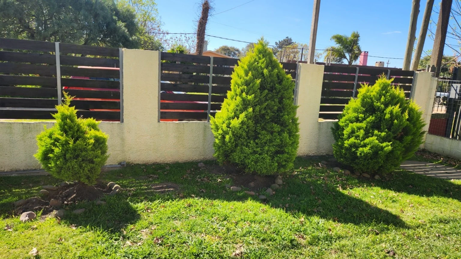 La propiedad cuenta con jardín al frente y un pequeño fondo, ideal para disfrutar al aire libre.