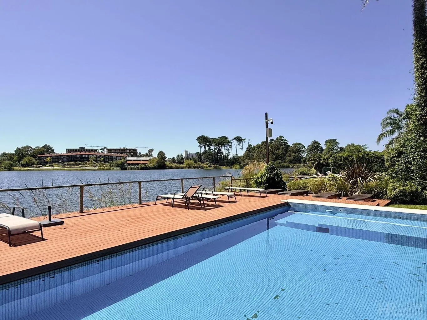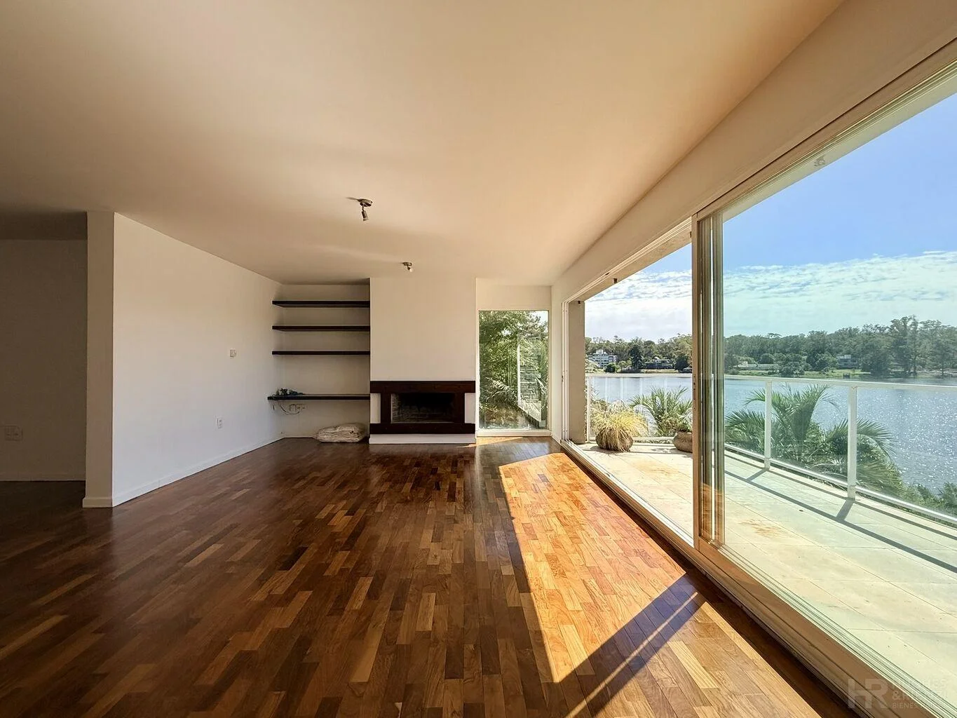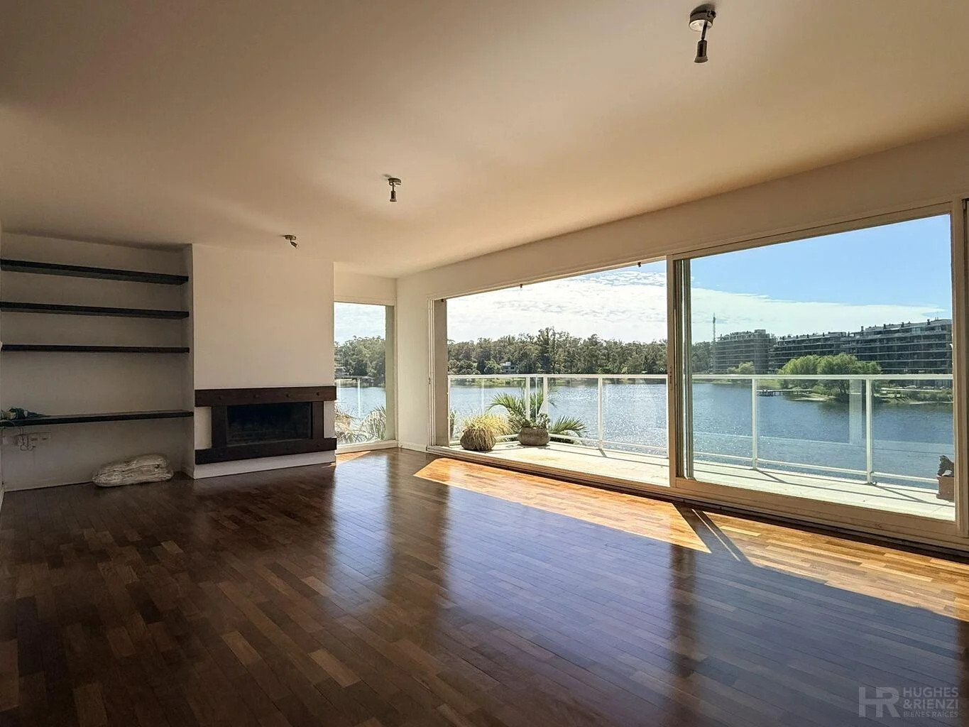 Divino apartamento sobre el lago, en Mirador del Lago. Amplia recepción, living-comedor con estufa a leña y salida a terraza con parrillero, todo con divina vista al lago y super luminoso. Baño social. Cocina grande con área de office y servicio completo. 3 dormitorios y 2 baños, principal en suite. Calefacción por losa radiante eléctrica. Garaje para 2 autos (doble) y box. Portería 24hs.