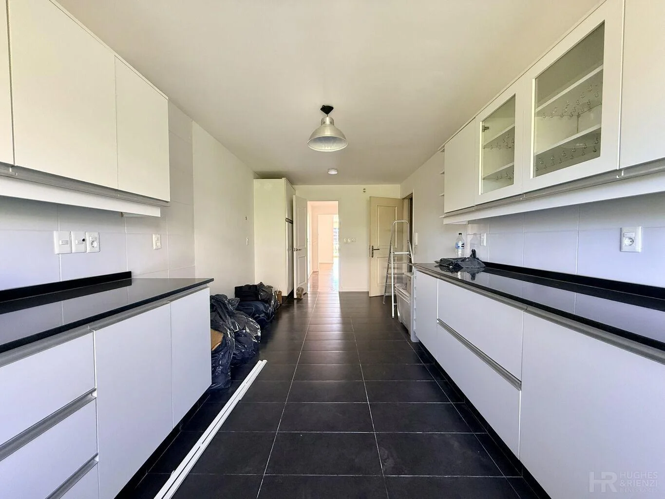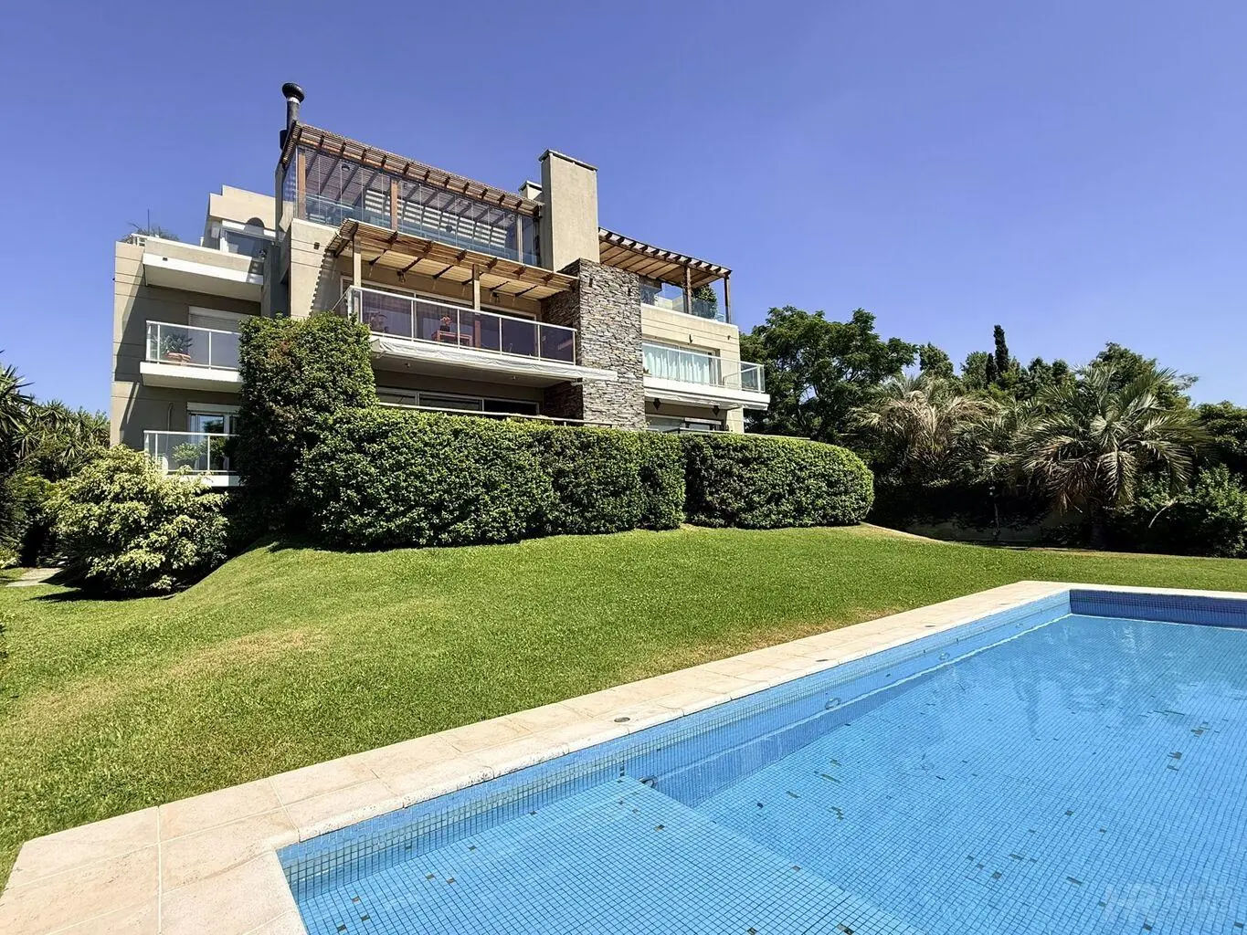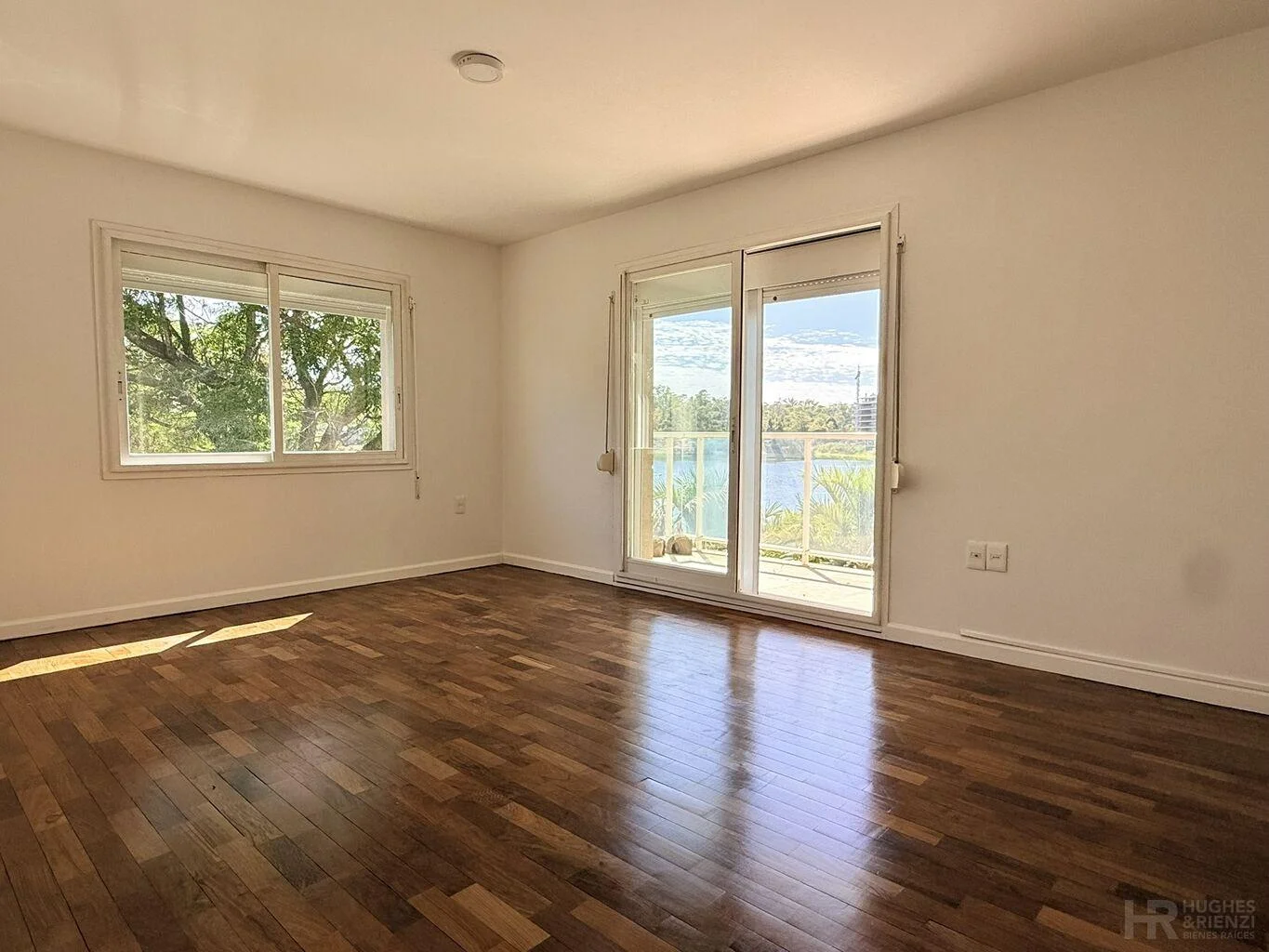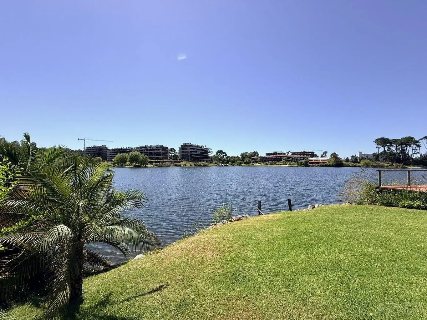Divino apartamento sobre el lago, en Mirador del Lago. Amplia recepción, living-comedor con estufa a leña y salida a terraza con parrillero, todo con divina vista al lago y super luminoso. Baño social. Cocina grande con área de office y servicio completo. 3 dormitorios y 2 baños, principal en suite. Calefacción por losa radiante eléctrica. Garaje para 2 autos (doble) y box. Portería 24hs.